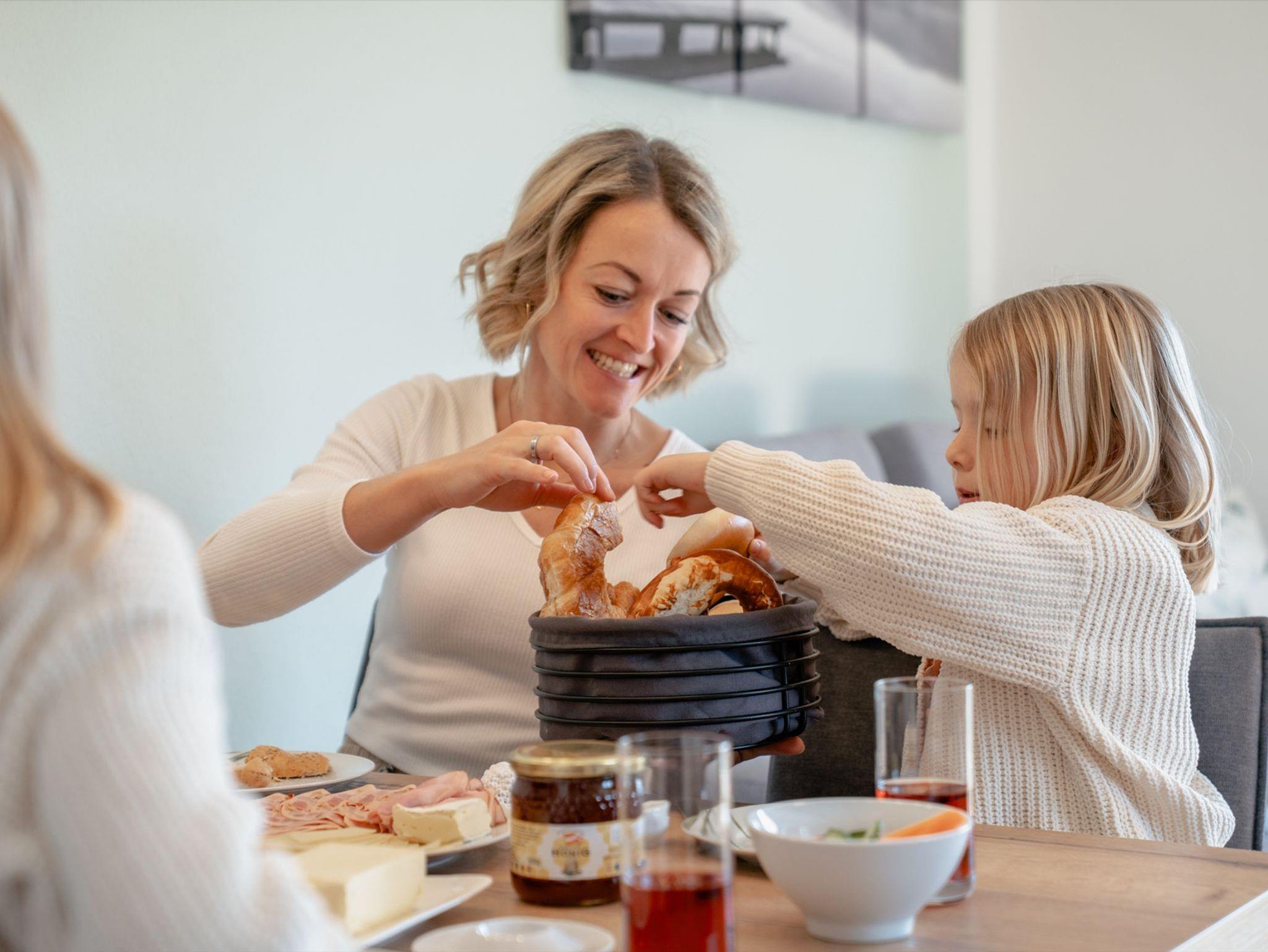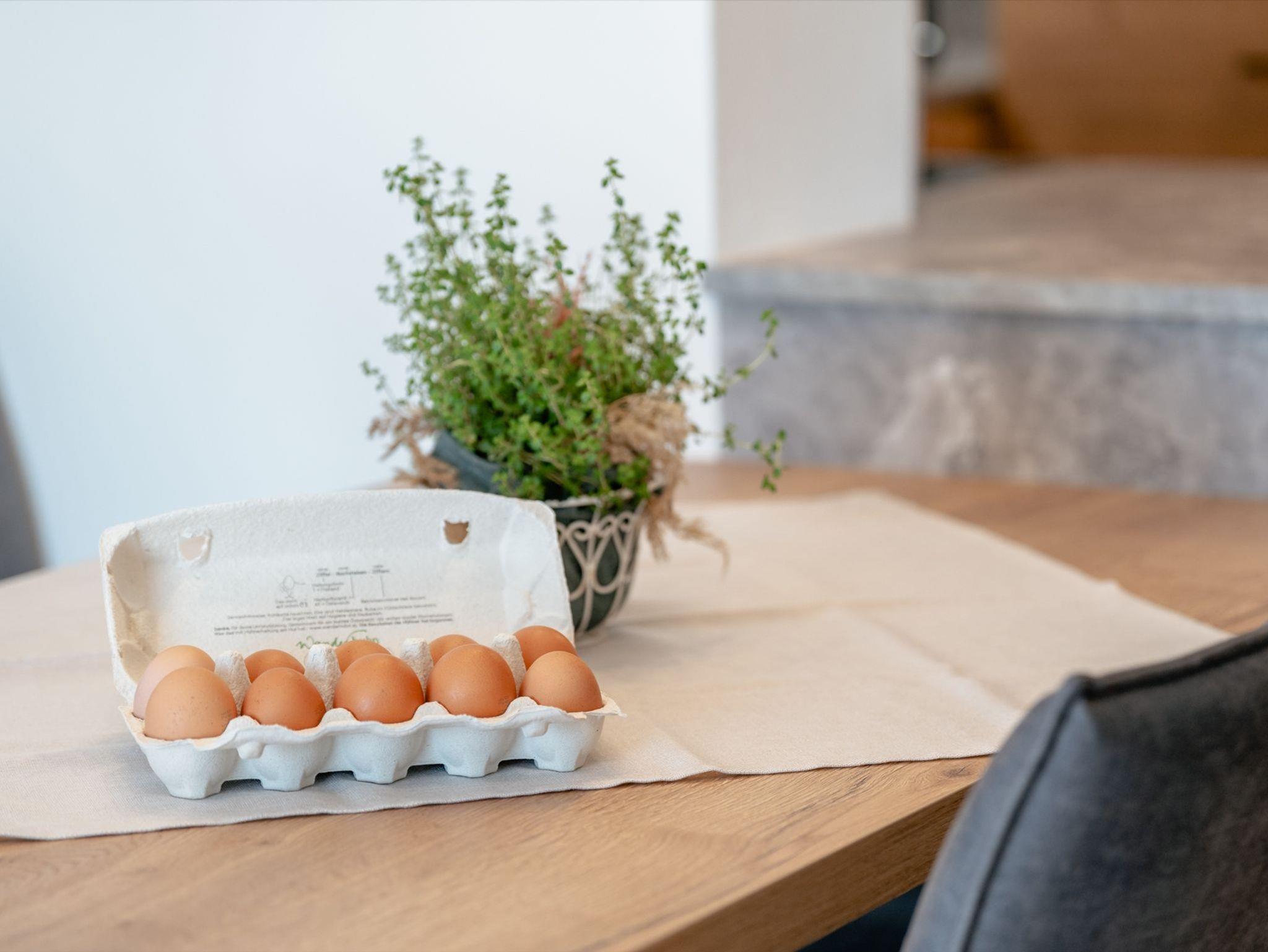 Genuss-Tipp: Am Tisch duftet das frische Bauernbrot (der Bäcker war bereits da und hat eure Bestellung geliefert) und die Eier könnt ihr euch bequem im Hofladen GlüXegg holen