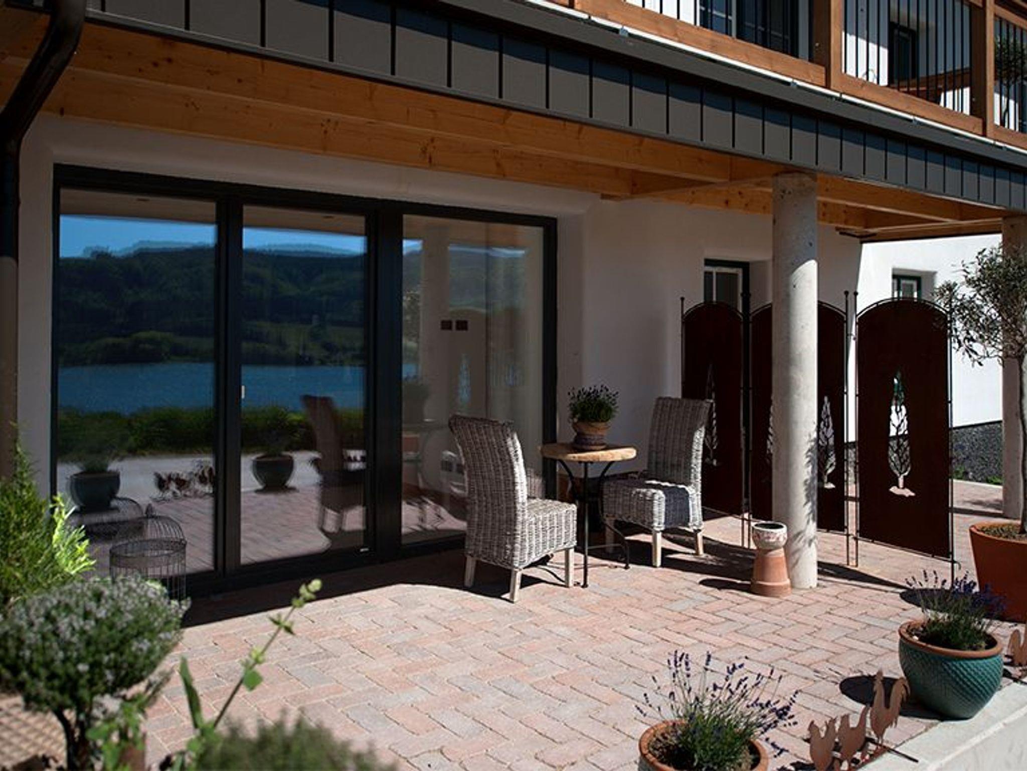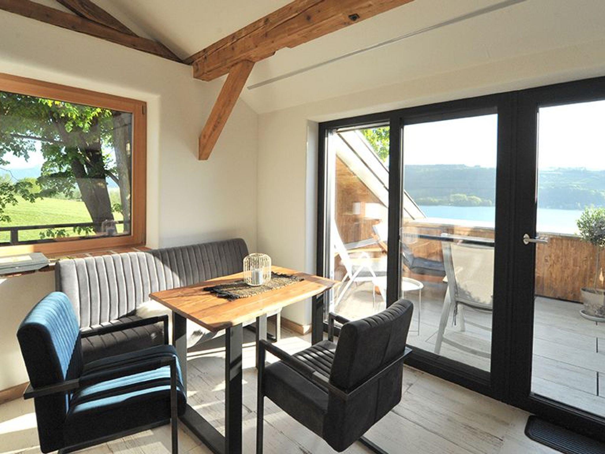 Wohnen mit Stil und Komfort, in mit Herz und Gefühl eingerichteten Wohlfühlzimmer für Zwei. Eine frei stehende Badewanne im Schlafzimmer, eine gemütliche Wohnküche und eine am Süd Hang gelegene Dachterrasse mit Blick auf den Irrsee, tragen zum Ankommen und wohlfühlen bei. Ein besonderer Bio Art Kaffee ist immer frei genießbar. Unser Roider Bio Frühstücks Kisterl wird individuell nach Appetit und Geschmack zusammengestellt. Für unsere Gäste steht ein eigener Carport Parkplatz bereit.