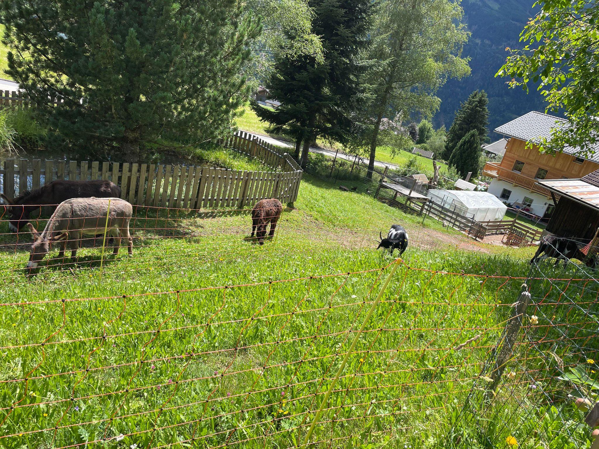 Mit uns auf dem Hof leben unsere drei Esel – Johanna, Constanze und Otto, unsere Ziegen – Heidi und Burgi, ein paar Hühner, Katzen und Kaninchen. In der warmen Jahreszeit versuchen wir den Großteil an Obst und Gemüse, den wir zum Essen brauchen, selbst zu kultivieren. Unsere Feriengäste sind herzlich eingeladen, die reifen Früchte zu verkosten.