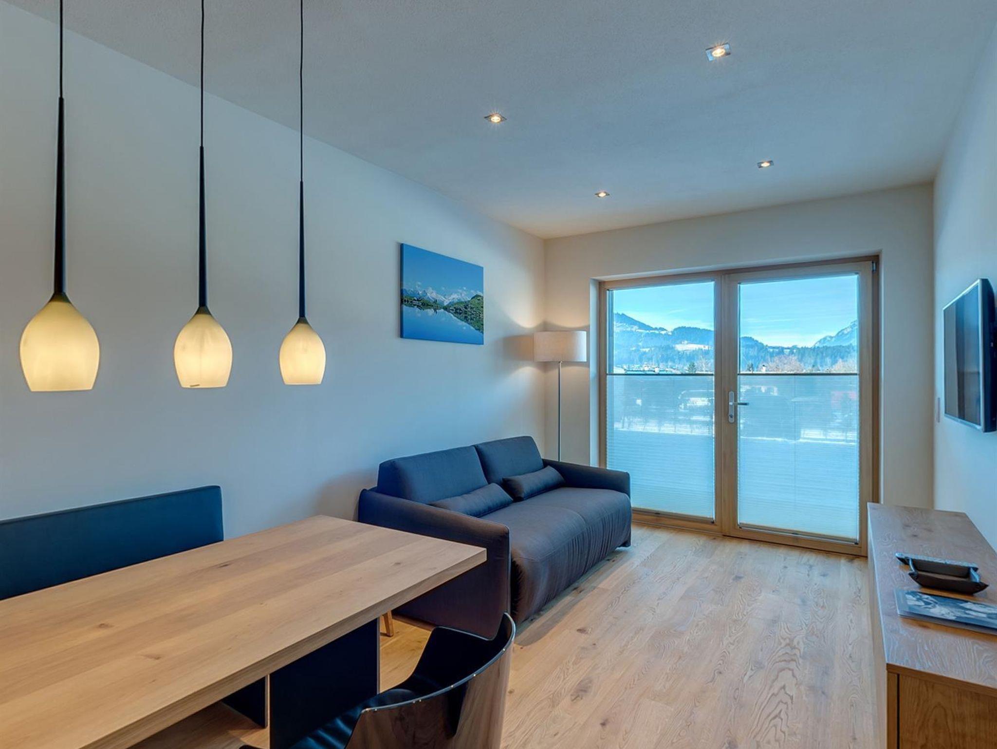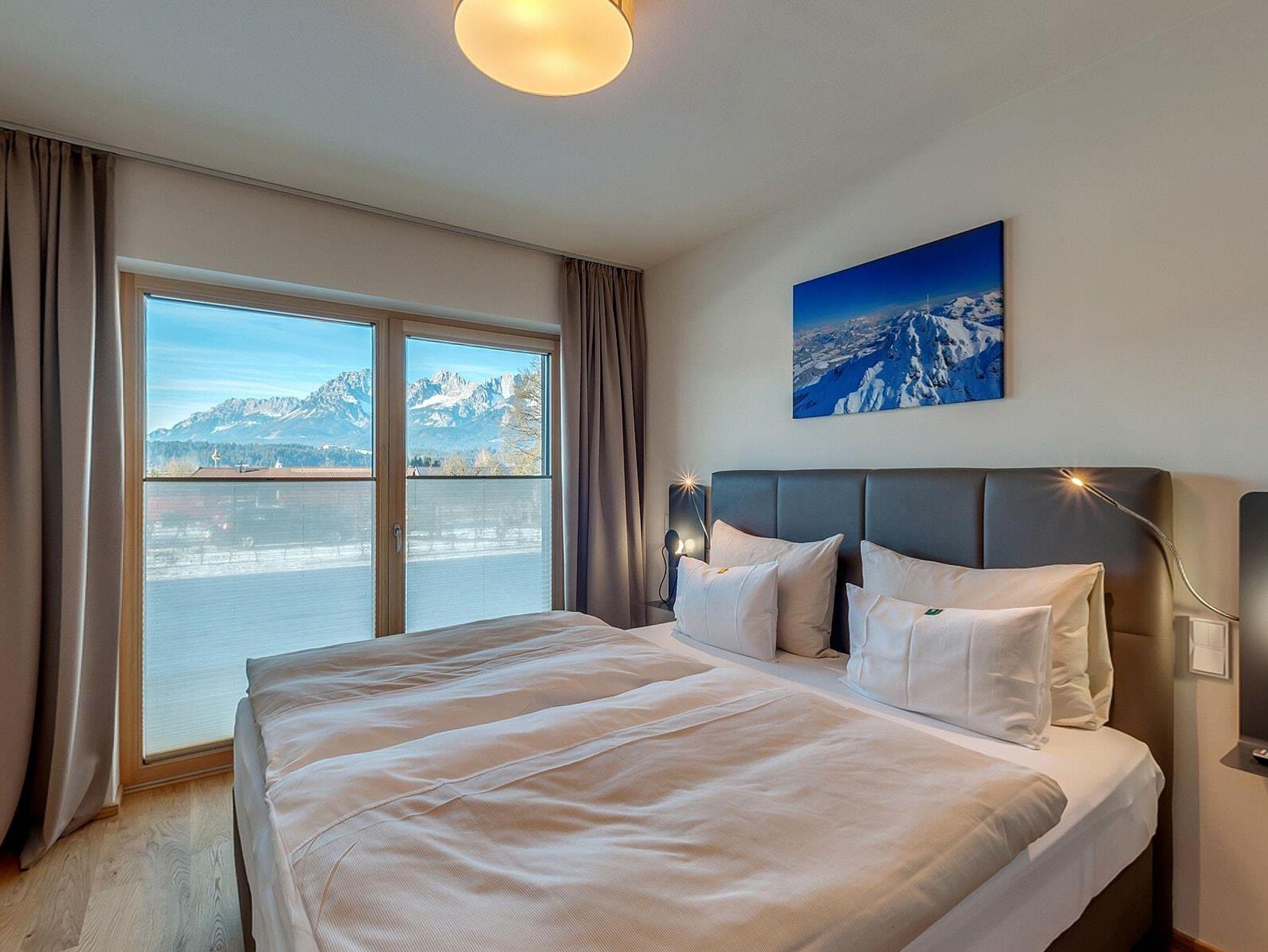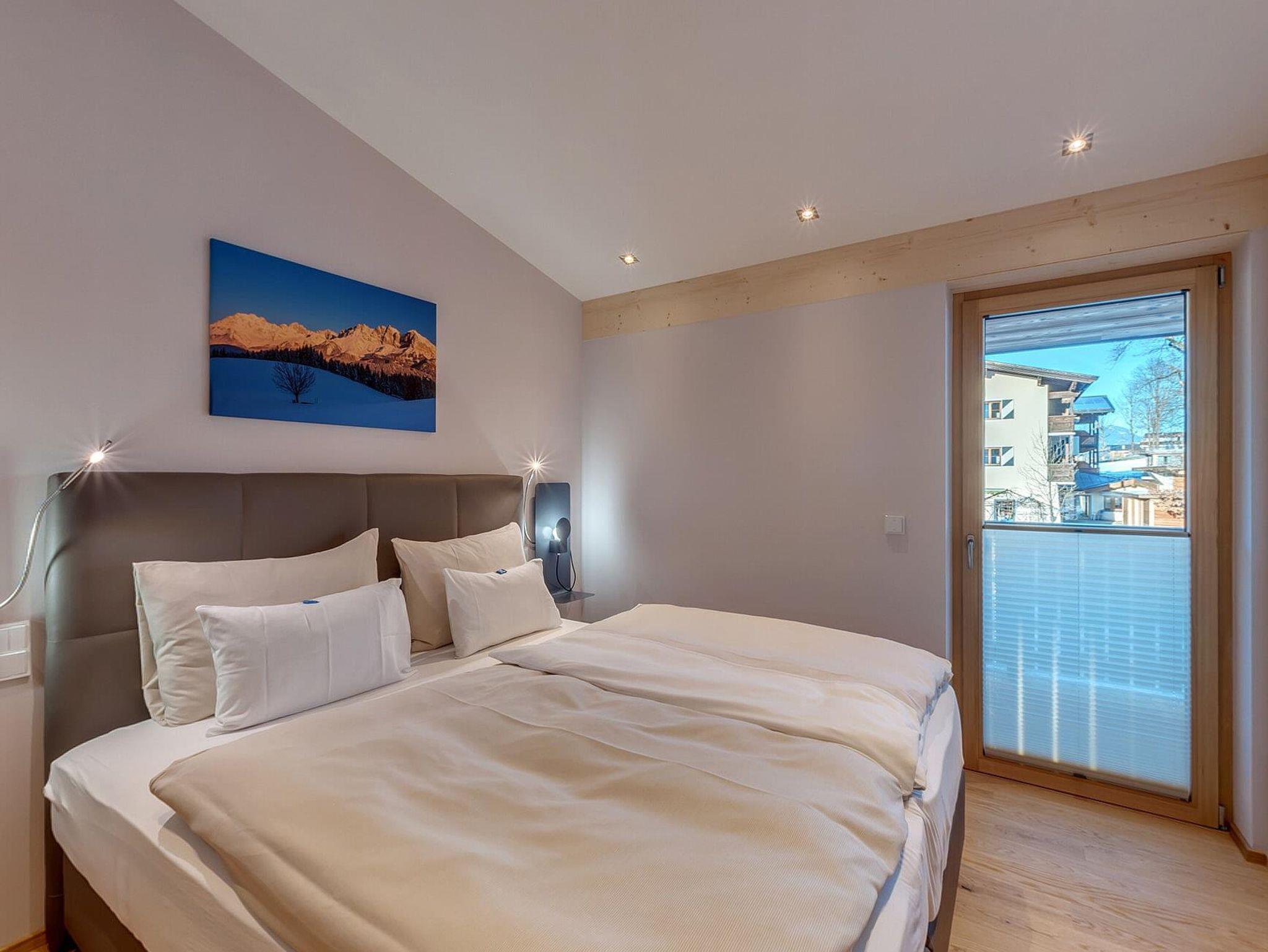 Die Natur Suite im EG hat 65 qm. Sie bietet 2 Schlafzimmer mit Boxspringbetten und HD-TV, Fliegengitter und Verdunkelung. Die 2 Bäder haben eine Regendusche, WC, Fön und Kosmetikspiegel. Waschmschine und Trockner. Das Wohnzimmer hat ein qualitativ-hochwertiges Schlaf-Sofa und HD-TV. Die Küche ist ausgestattet mit Backofen, Kühlschrank mit Tiefkühlfach, Geschirrspüler, Mikrowelle, Nespresso Kaffeemaschine. Der Balkon ist mit Blick auf den Wilden Kaiser. Es gibt WLAN, Parkplatz und einen Skiraum. In dieser Ferienwohnung sind Hunde herzlich willkommen (gegen Gebühr).