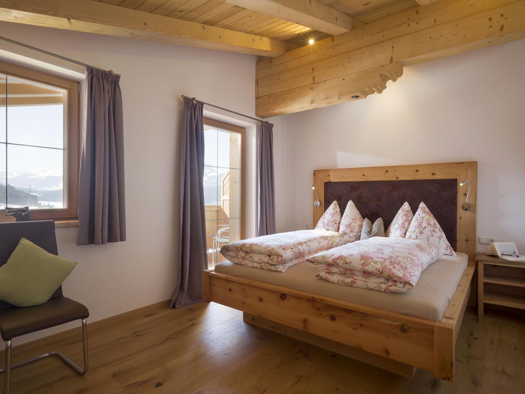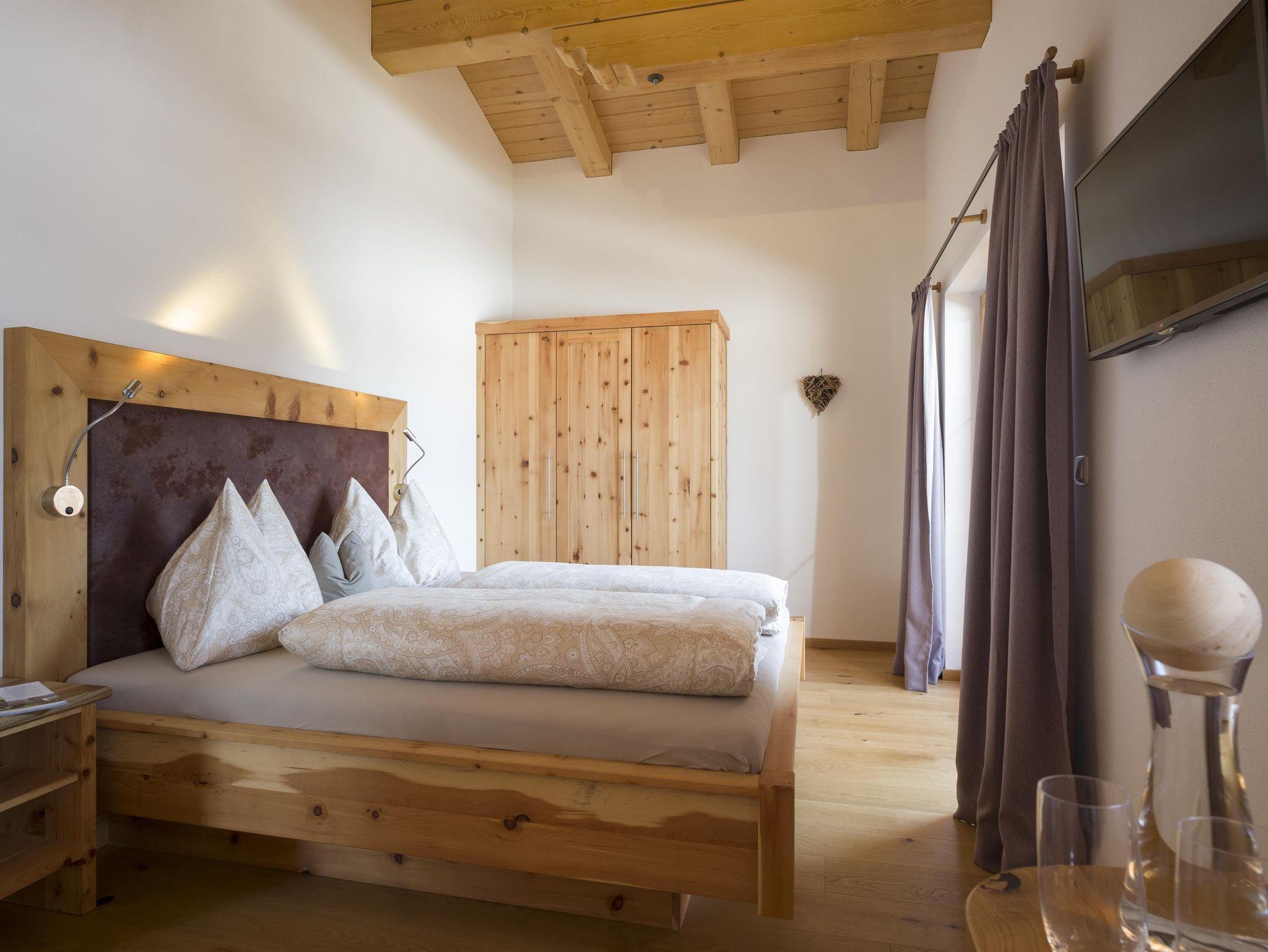 • In den Geräumigen und komfortablen Ferienwohnungen aus ZIRBENHOLZ finden Sie alles, was Sie für einen erholsamen Aufenthalt benötigen. Die Wohnungen sind mit Sichtdachstuhl und je zwei Balkone.