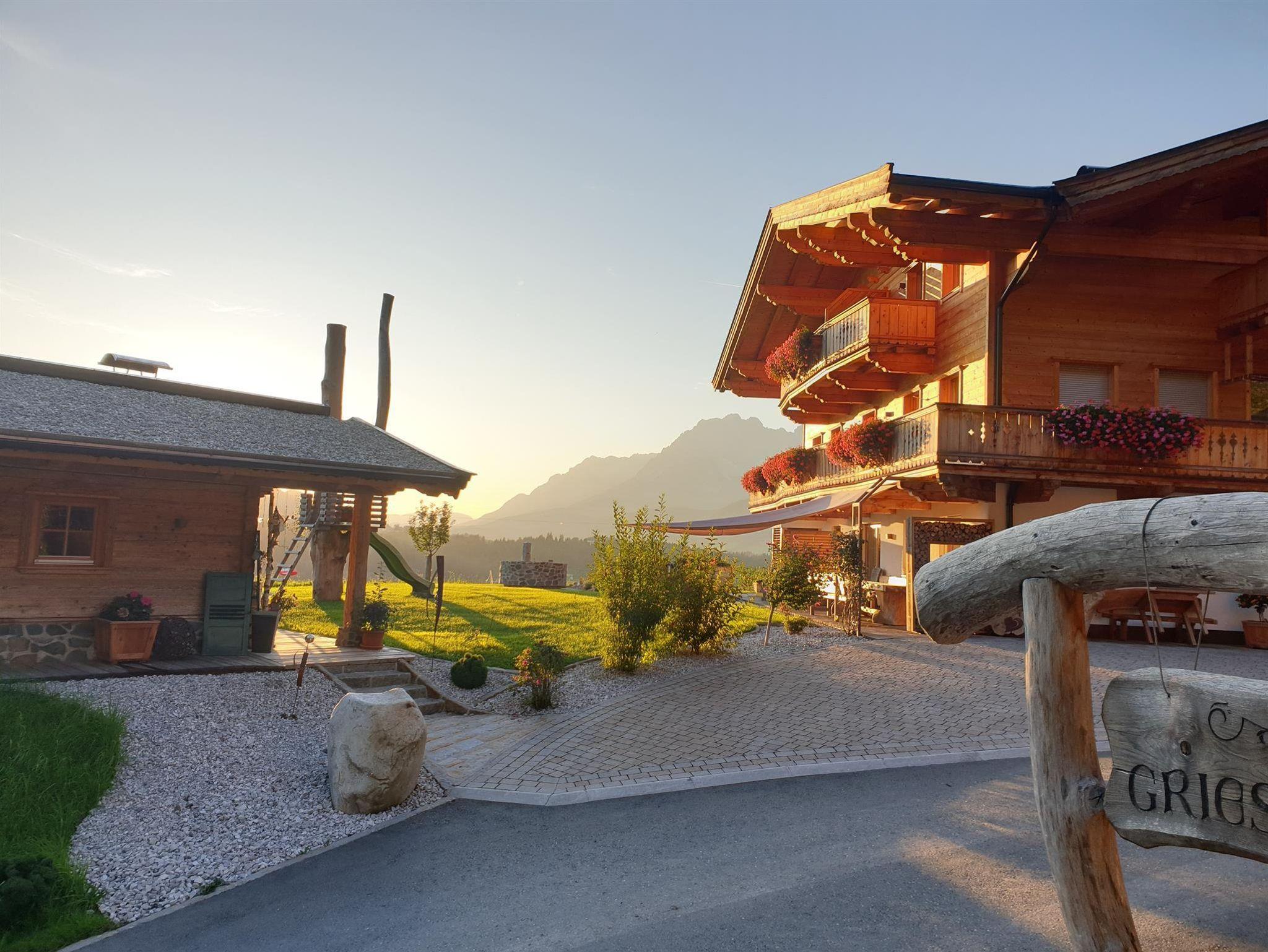 Die Ferienwohnung Griesbachhof in Oberndorf in Tirol am Wilden Kaiser nähe Kitzbühel, bietet einen atemberaubenden Rückzugsort für Naturliebhaber, Skibegeisterte und Biker.