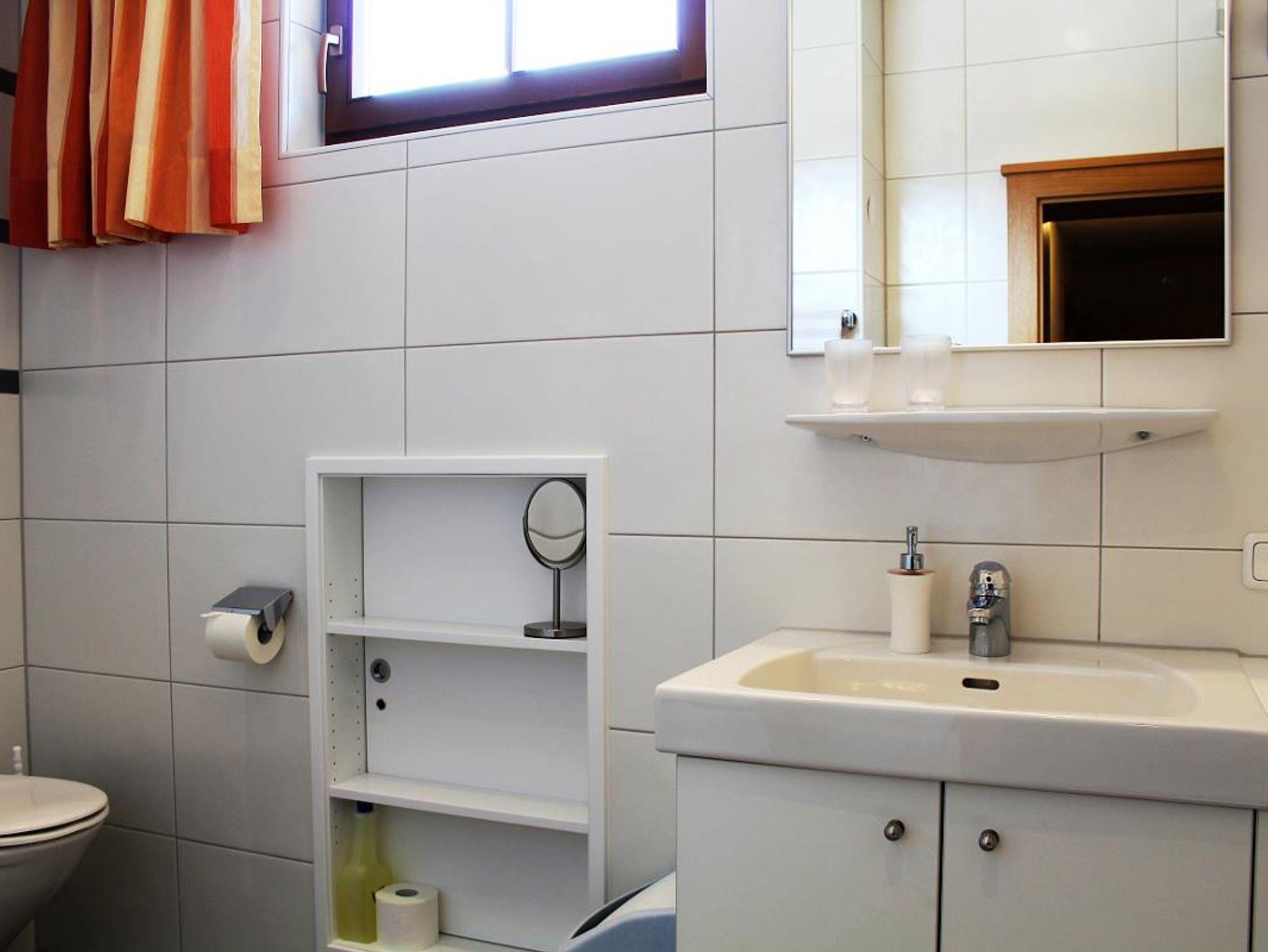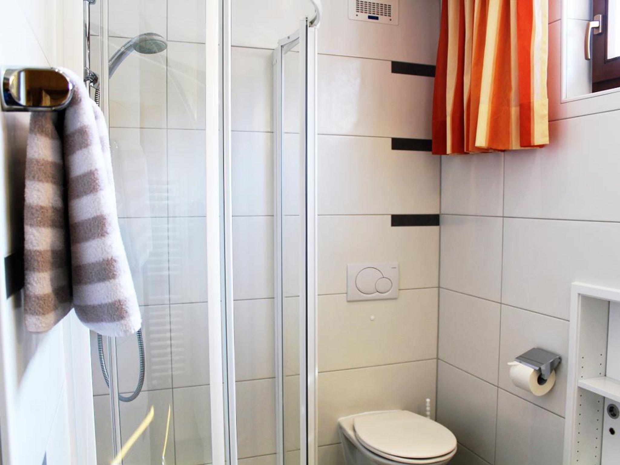 Appartement mit Nachmittagssonne und gemütlicher, voll ausgestatteter Wohnküche, das Schlafzimmer mit Naturholzmöbel und Parkettboden, das 3. Bett kann zum Etagenbett erweitert werden. Vom Bad aus haben Sie freien Blick zur Porze.