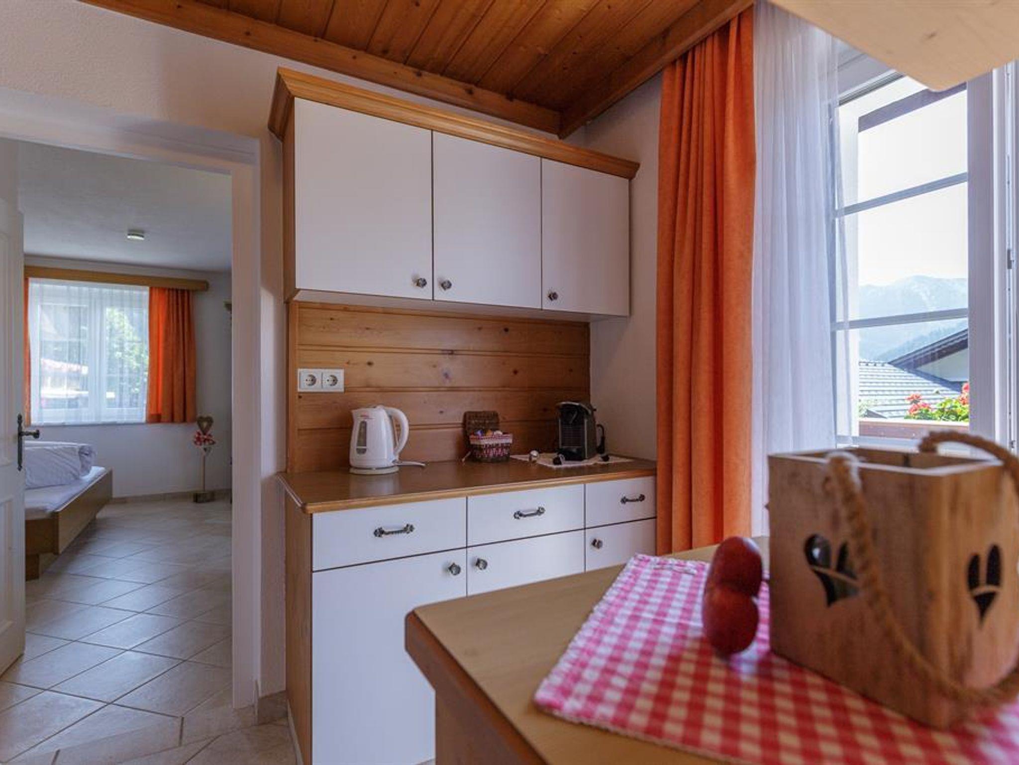 Zwei voneinander getrennte Schlafzimmer sowie eine Küche bieten Platz für bis zu vier Personen. Vom südseitigen Balkon aus genießen Sie einen herrlichen Blick auf die umliegende Bergwelt.