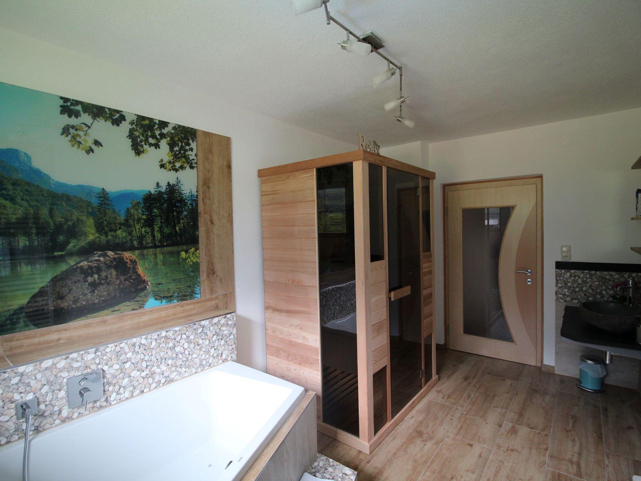 • Ein geräumiges Bad mit Whirlpool und Infrarotkabine