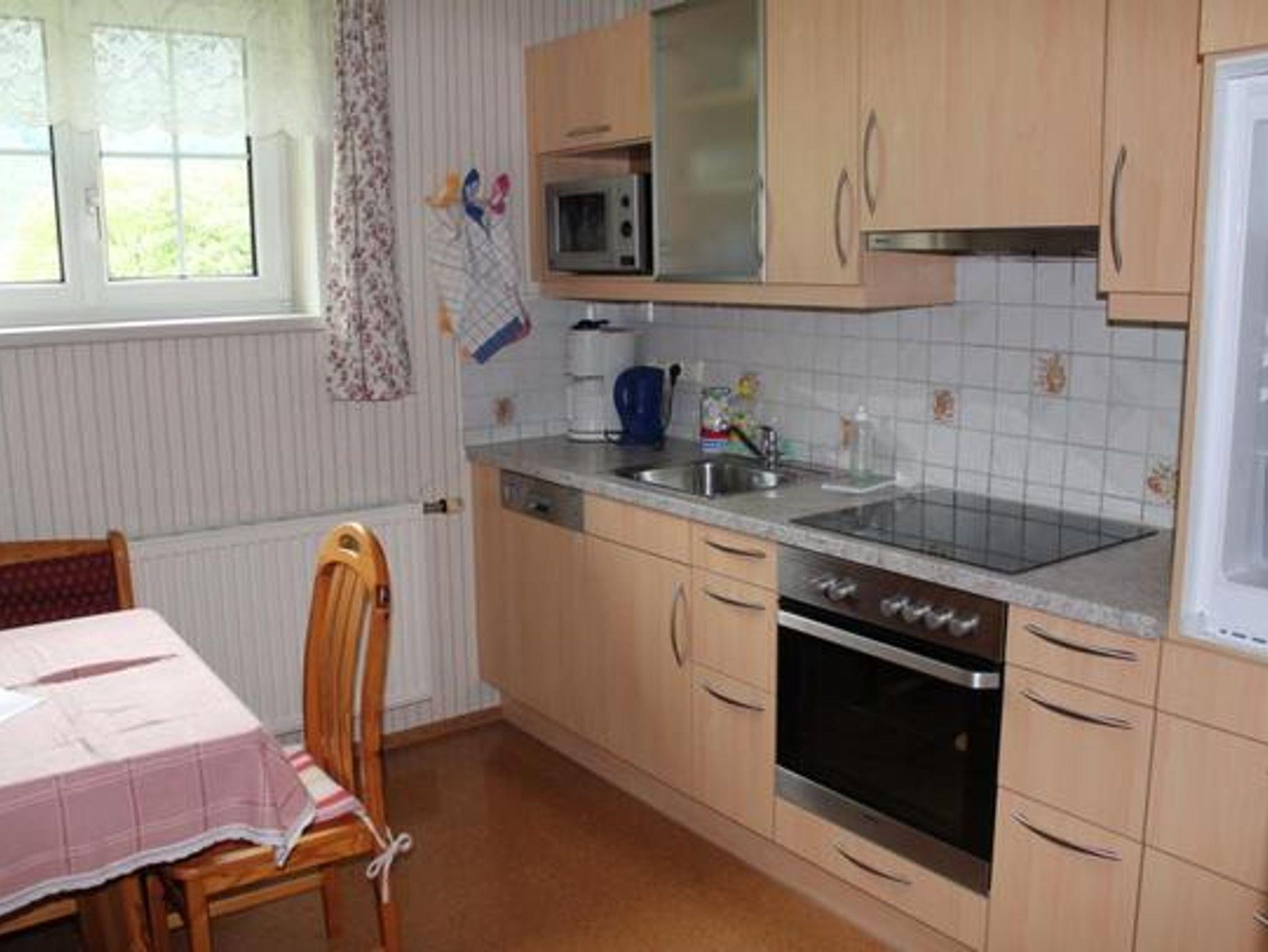 Das Zimmer EFEU hat ein Doppelbett mit freiem Fußende und eine Küchenecke mit 2 Kochplatten, Geschirr, Mikrowelle, Kühlschrank, Wasserkocher, Kaffeemaschine. Das Etagenbett kann zu einer bequemen Sitzgelegenheit umgewandelt werden. SAT-TV kann vom Etagenbett oder vom Bett aus gesehen werden. Radio und Telefon mit Haustür-Sprechanlage und Türöffner ist im Zimmer. Bett- und Tischwäsche, Geschirrtücher, Bade-und Handtücher sind vorhanden.