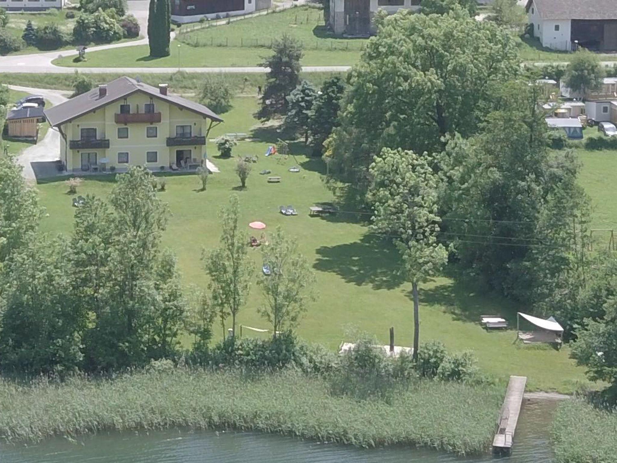 Vom Appartement wenige Schritte und unser eigener Badestrand mit kinderfreundlich verlaufendem Seeufer und Badesteg lädt zum Sprung ins kühle Nass.