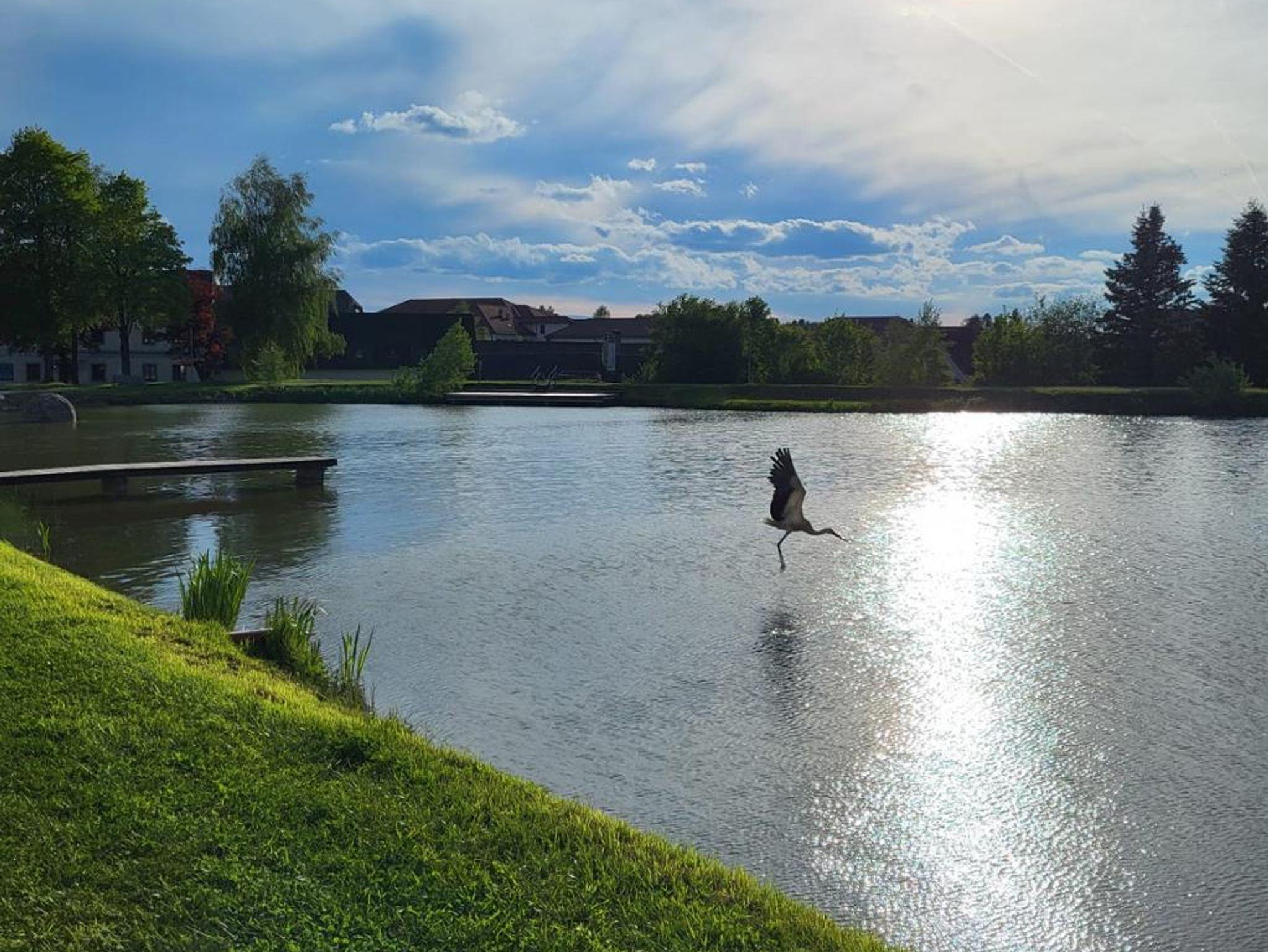 Das 2024 behutsam neu renovierte Ferienhaus ist circa 1 Gehminute vom örtlichen Badesee (mit Strand, Teichstüberl und Freizeitanlagen) entfernt.