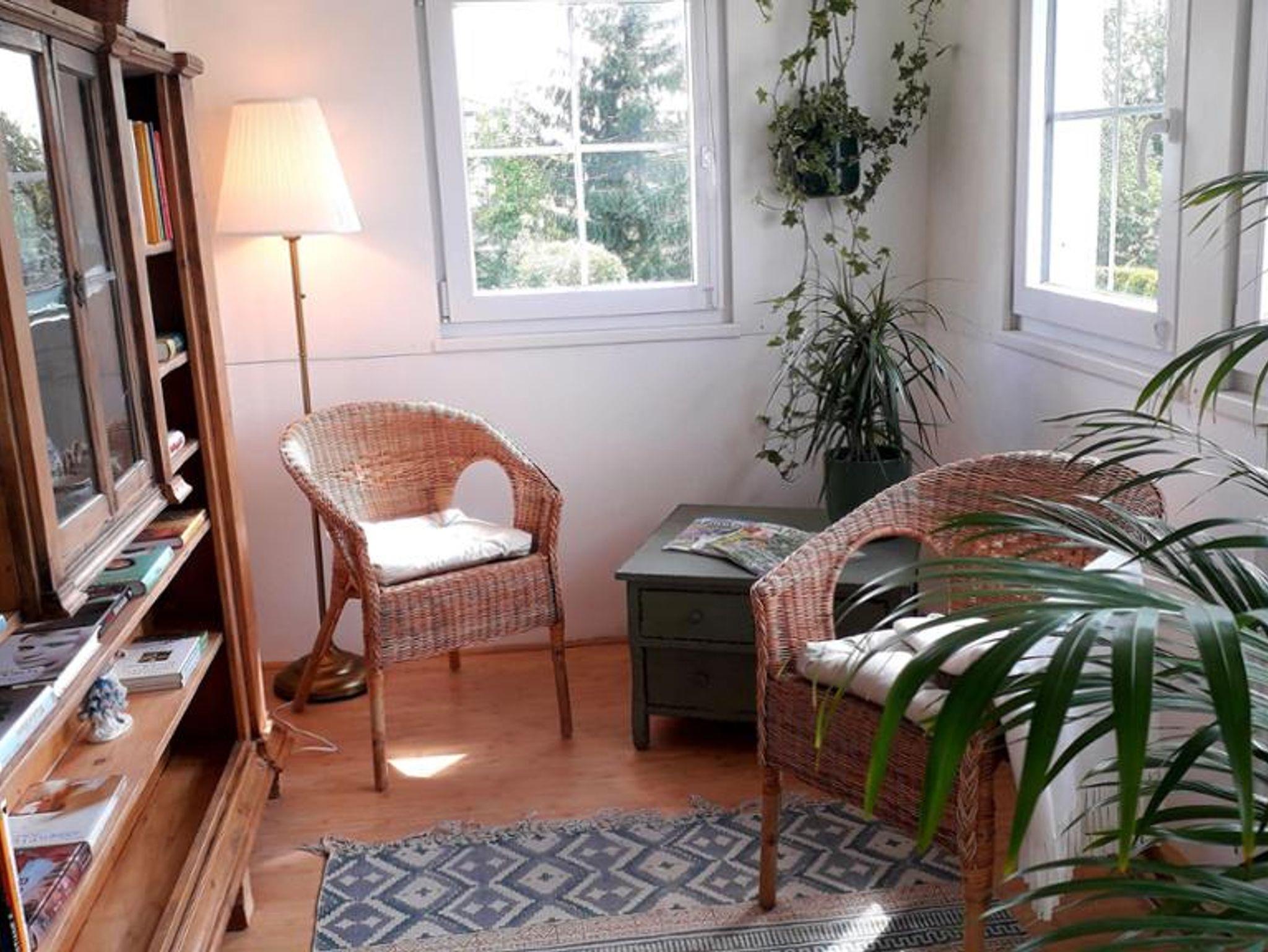 Ebenfalls in der oberen Etage befindet sich ein Wintergarten, der als gemütliches Lesezimmer (Bücher und diverse Spiele sind vorhanden) genutzt werden kann.