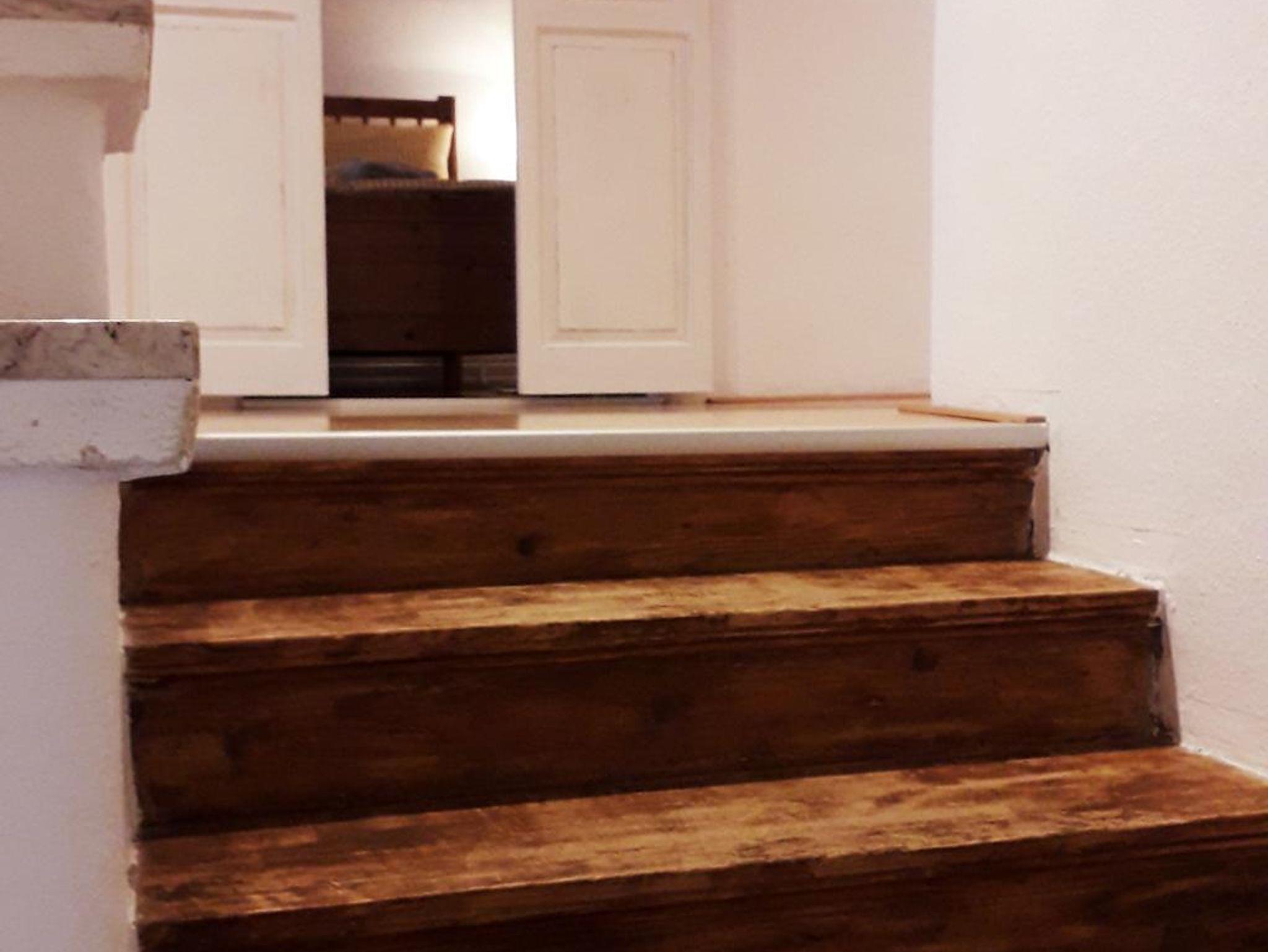Insgesamt 3 Schlafzimmer liegen in der oberen Etage (3 Doppelbetten), außerdem ein weiteres WC mit Waschbecken und Spiegel.