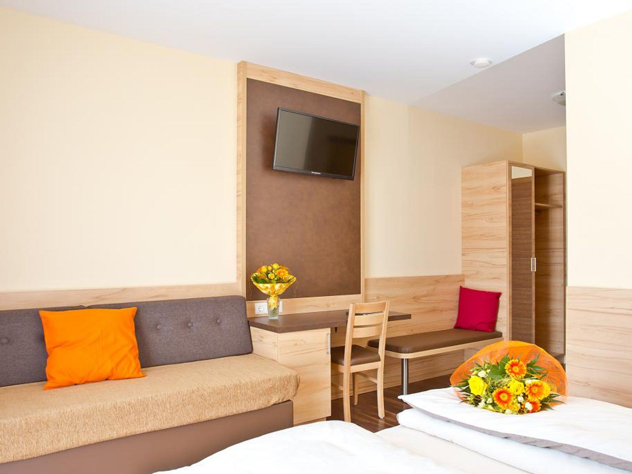 Modern ausgestatteten Gästezimmer sind mit Dusche/WC, Fön, Kosmetikspiegel, orthopädische Bandscheibenmatratzen, HD Sat-TV Flachbildfernseher, kostenloses-Flächendeckendes WLAN und Zimmersafe ausgestattet.