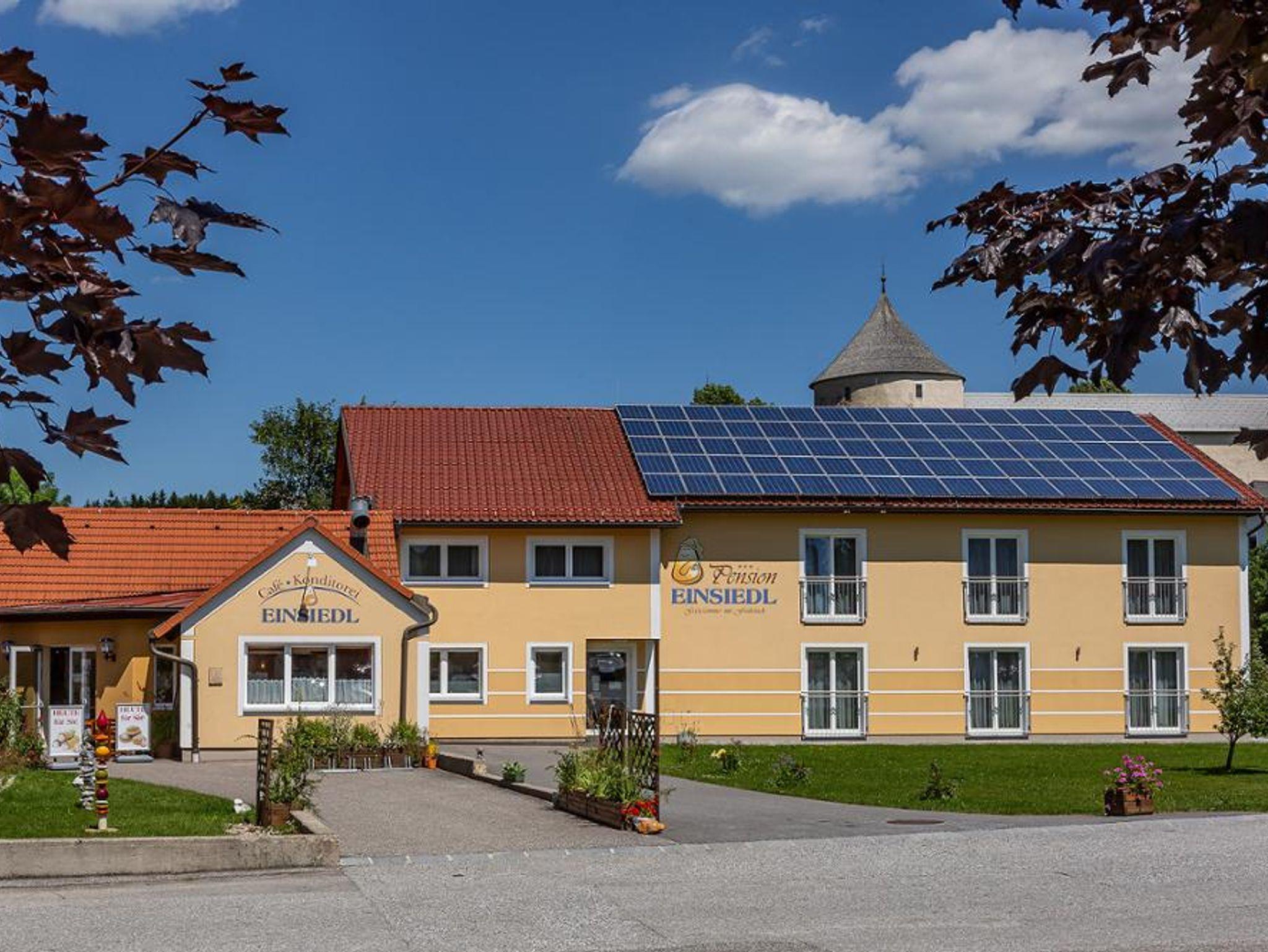 Unsere Wohlfühl-Pension: Die 2009 neu errichtete Pension Einsiedl liegt am Unteren Ortsteich von Ottenschlag. Die 16 modern ausgestatteten Gästezimmer sind mit Dusche / WC, HD Sat-TV Flachbildfernseher, kostenloses Flächendeckendes WLAN, orthopädische Bandscheibenmatratzen, Kosmetikspiegel, Fön und Zimmersafe ausgestattet. Die Größe der Zimmer bietet die Möglichkeit ein Dreibettzimmer bzw. durch ein zusätzliches Zustellbett / Gitterbett eine Wohlfühlatmosphäre für Eltern mit 2 Kindern zu schaffen. Alle Zimmer sind Nichtraucherzimmer.Haustiere sind leider nicht erlaubt. Wir haben für Sie auch einen kostenlosen Parkplatz und einen Abstellplatz für Ihr Fahrrad. Unser Frühstücksraum: Dieser bietet 46 Sitzplätze für das Frühstück mit üppigem Buffet. Der Raum eignet sich aber auch sehr gut für individuelle Veranstaltungen wie Vorträge, Lesungen, Sitzungen, Seminare, Geburtstagsfeiern, Nachmittagskaffes, Weihnachtsfeiern, ( erweiterung auf 60 Sitzplätze, Tisch variabel). Für Fotos- und Videofilm-vorführungen bei Geburtstagsfeiern oder anderen Anlässen stellen wir Ihnen Beamer, Leinwand, Pinnwand, und Flipcharts gerne zur Verfügung. Info: Cafe - Konditorei Einsiedl (T) 02872 / 7254.