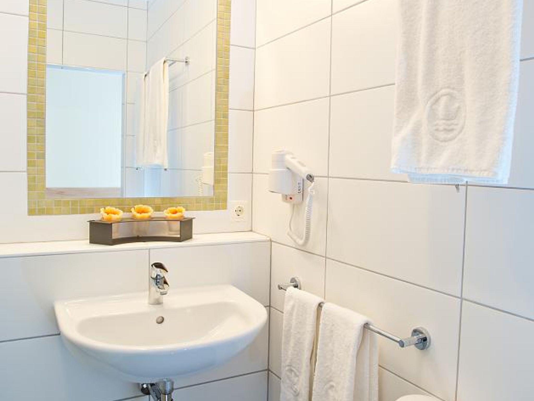 Modern ausgestatteten Gästezimmer sind mit Dusche/WC, Fön, Kosmetikspiegel, orthopädische Bandscheibenmatratzen, HD Sat-TV Flachbildfernseher, kostenloses-Flächendeckendes WLAN und Zimmersafe ausgestattet.