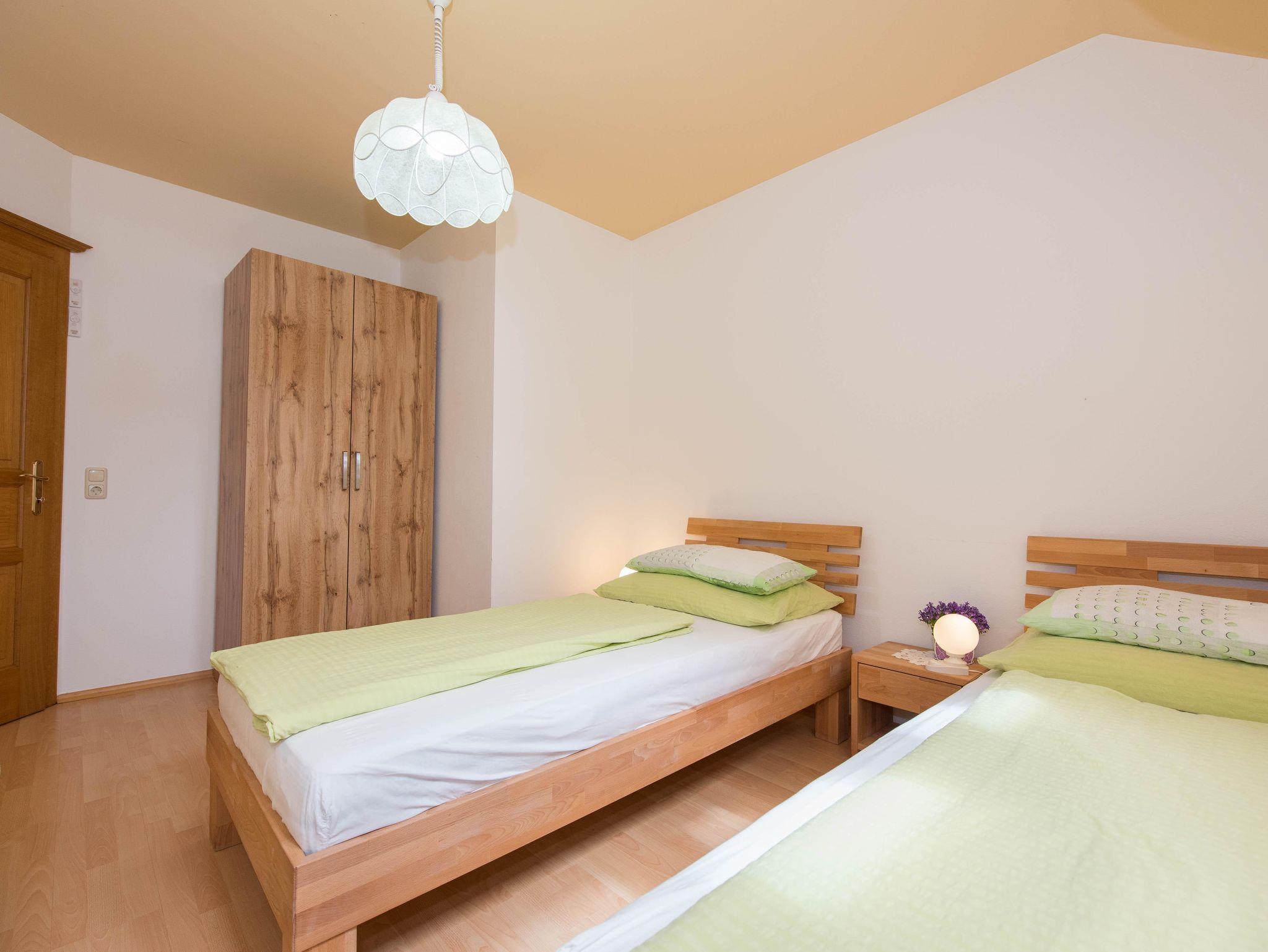 Gemütliche Ferienwohnung, 80 m2, Wohnküche mit Geschirrspüler, zwei Schlafzimmer, Bad, WC und Vorraum stehen für unsere Gäste bereit. Radio, Telefon, Satelliten TV, Mikrowelle, Teekocher runden das Angebot ab.