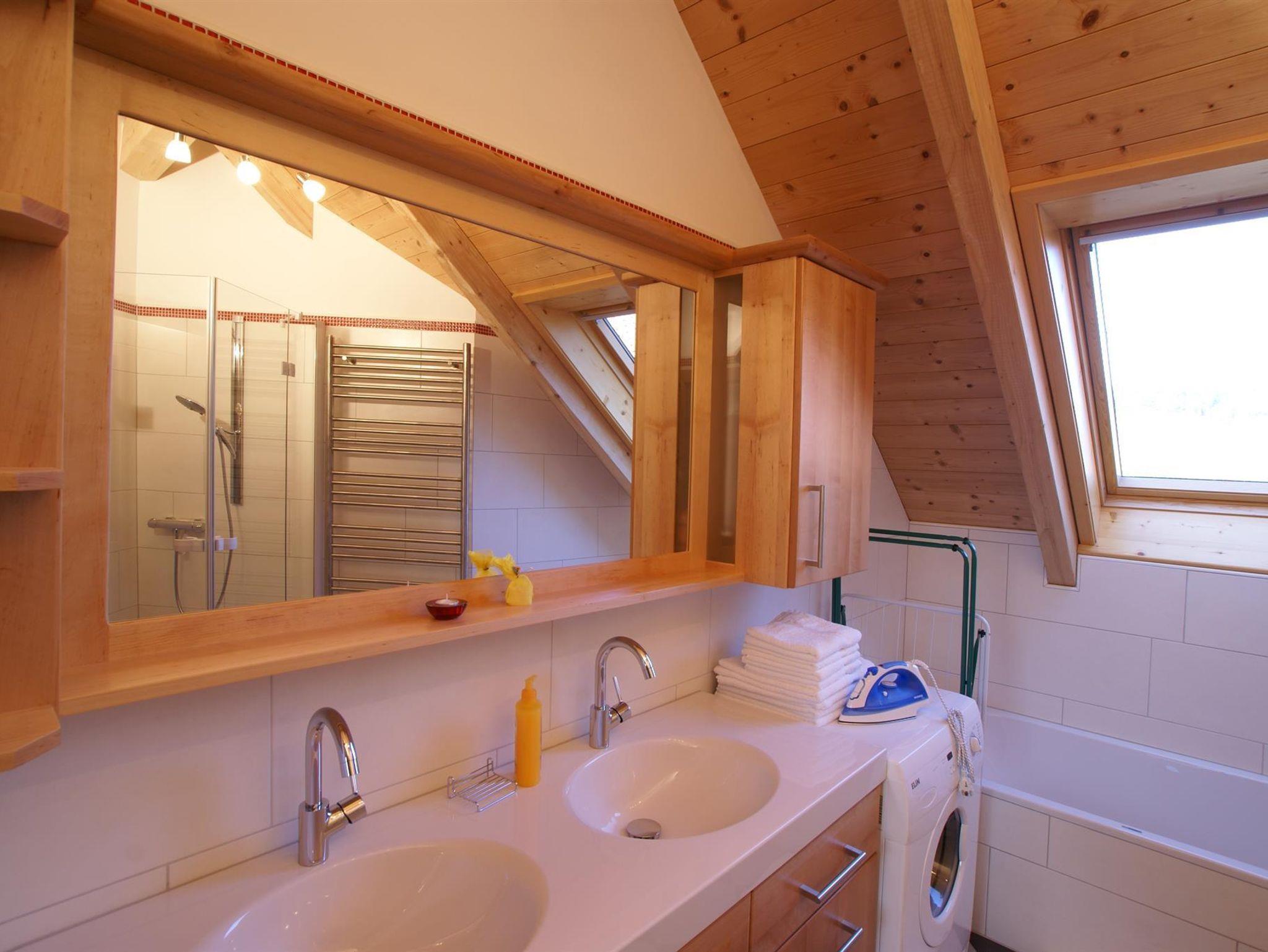Die 124 m² große Wohnung liegt im Dachgeschoss des Ferienhauses. Große vollausgestattete Wohnküche (37 m²) - Einbauherd mit Ceran-Kochfeld, Mikrowelle, Geschirrspüler, Kühlschrank mit Gefrierfach sowie SAT, TV und Stereoanlage. Geräumiges Badezimmer (8 m²) mit Doppelwaschtisch, Spiegelschrank, Waschmaschine, Dusche, Badewanne, Fön, Handtücher und Bademäntel. WC mit Pissoir und Handwaschbecken.