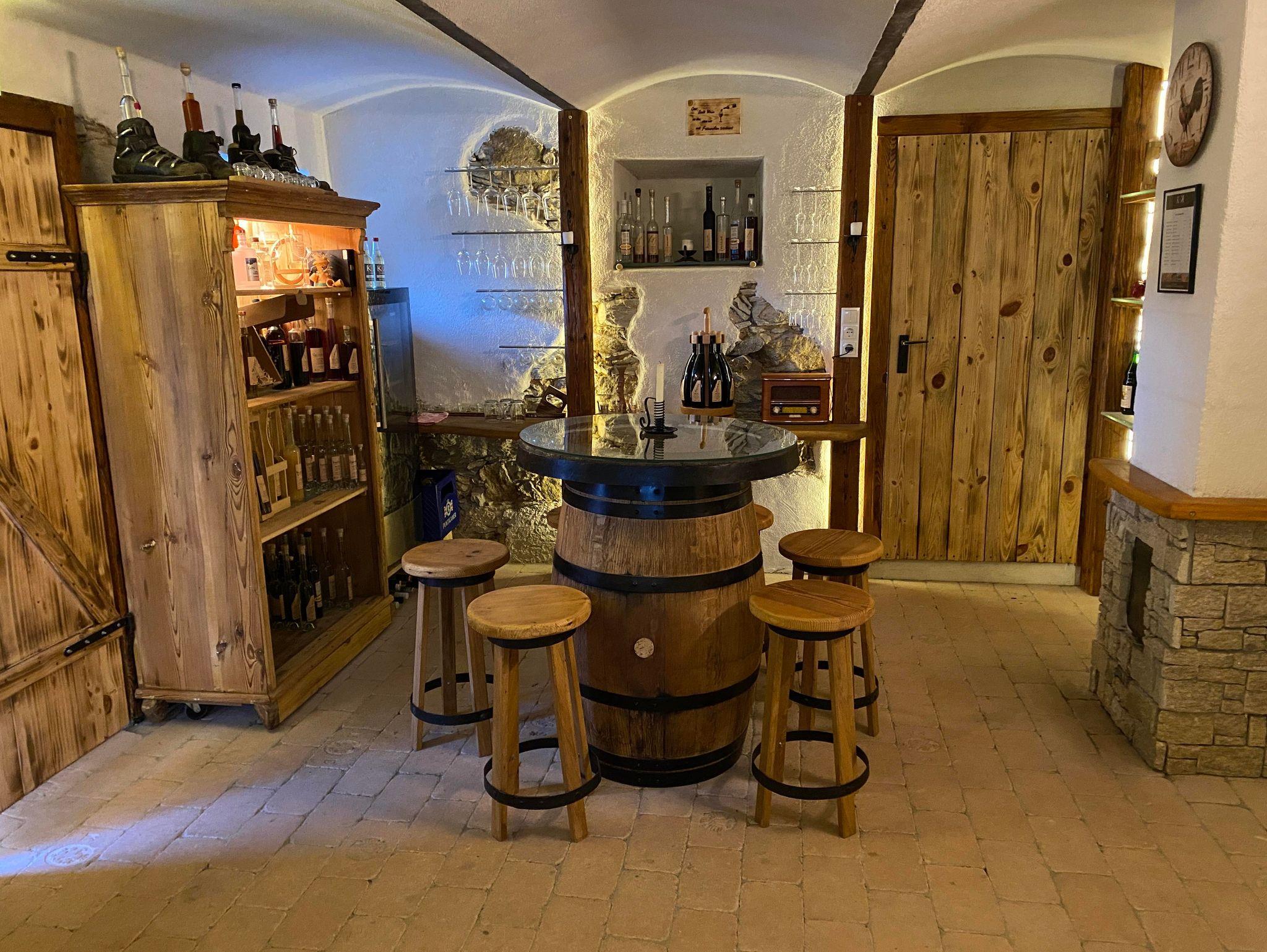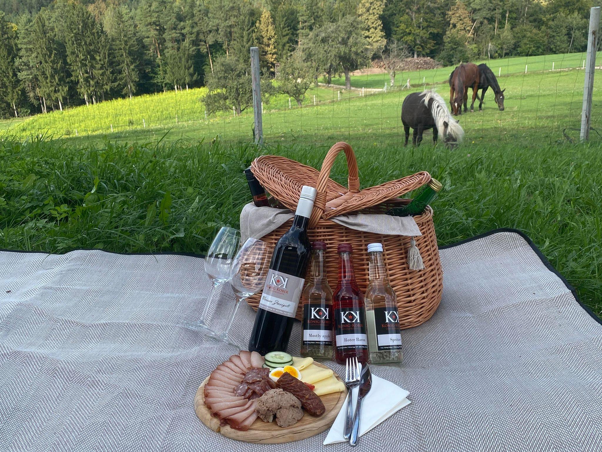 Hausgemachte Produkte können unter der gemütlichen Laube oder im Weinkeller verkostet werden.