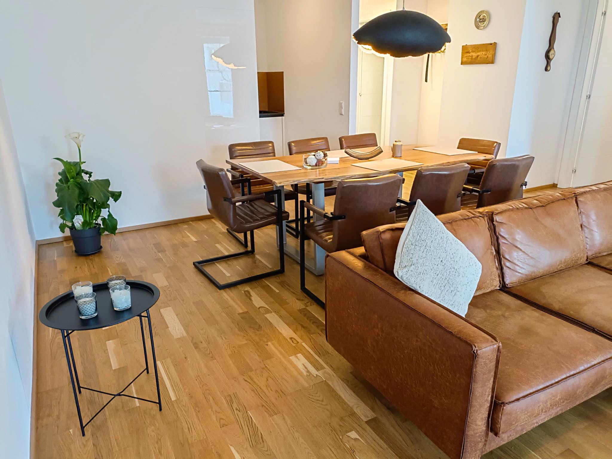 "Luxury Sunrise", 2-room apartment 75 m2 on 2nd floor. Spacious and bright, modern furnishings: large living/dining room with dining table, satellite TV and digital TV (flat screen). Exit to the balcony. 1 double bedroom. Kitchenette (oven, dishwasher, 4 ceramic glass hob hotplates, toaster, kettle, microwave, electric coffee machine, Capsules for coffee machine (dolce gusto) extra). Bath/shower, sep. WC, double hand-basin with corner bath. Underfloor heating. Parquet floors. Large balcony 28 m2. Balcony furniture. Facilities: washing machine, iron, hair dryer. Internet (WiFi, free). Parking space n 10 (roofed) at the house. Please note: non-smokers only. Maximum 1 pet/ dog allowed. Top equipped, modern apartment in an ideal location!