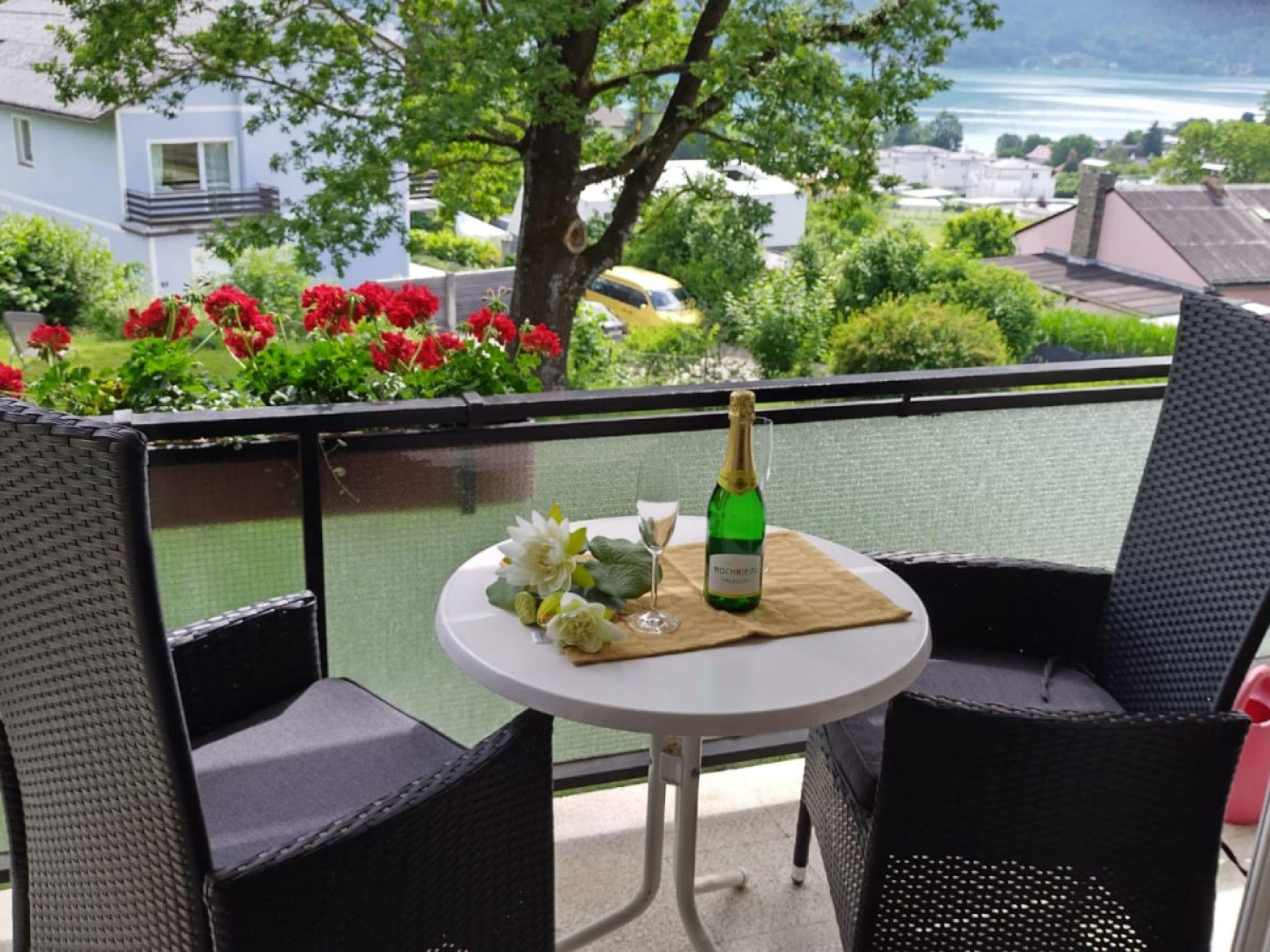 "Meran", 3-room apartment 70 m2 on 1st floor. Bright, tasteful furnishings: living/dining room with dining table, satellite TV and radio. Exit to the balcony. 1 room with 1 bed and 1 double bed. Exit to the balcony. 1 room with 1 bed and 1 double bed. Kitchen (4 hot plates, oven, microwave, electric coffee machine). Shower, sep. WC. Heating. Parquet floors. Small balcony, south facing position, small balcony, south facing position. Balcony furniture. Very beautiful panoramic view of the lake. Facilities: baby cot. Internet (WiFi). Please note: non-smokers only. Maximum 1 small pet/ dog allowed.