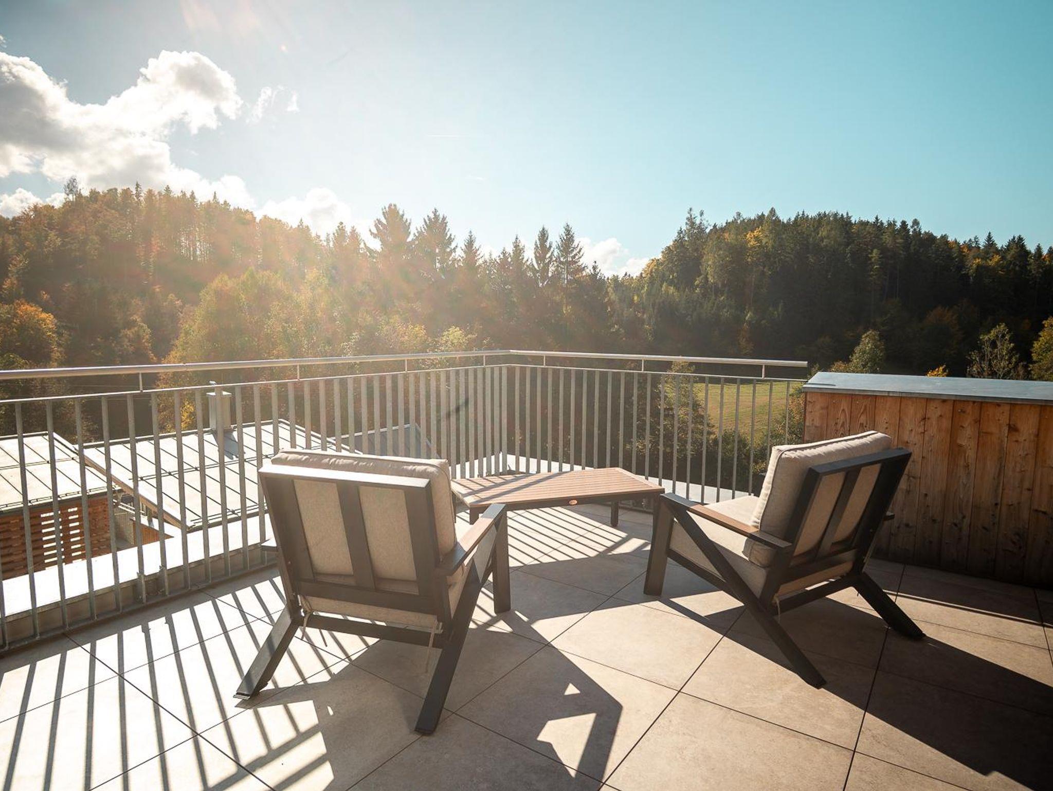 Gemütliche Holz-Lodges verbunden mit moderner, hochwertiger Ausstattung; ruhig mitten im Grünen und gleichzeitig seid ihr in wenigen Minuten direkt am Wörthersee. Auf 60m² Wohnfläche erwartet euch ein lichtdurchfluteter Wohn-Essbereich mit moderner, voll ausgestatteter Küche – ideal für gemeinsame Kochabende mit Familie oder Freunden. Die Küche lässt keine Wünsche offen. Zwei gemütliche Schlafzimmer – eines mit Doppelbett, das andere mit einem praktischen Hochbett – sowie eine bequeme Schlafcouch im Wohnzimmer bieten Platz für bis zu sechs Personen. An sonnigen Tagen genießt ihr eure Mahlzeiten auf eurer eigenen Terrasse mit kleinem Garten. Und wenn der Tag langsam ausklingt, wartet schon ein besonderes Highlight auf euch: die 50 qm große, private Dachterrasse mit gemütlichen Loungemöbeln. Hier seid ihr ungestört, vor Blicken geschützt – und der Sternenhimmel gehört ganz euch.