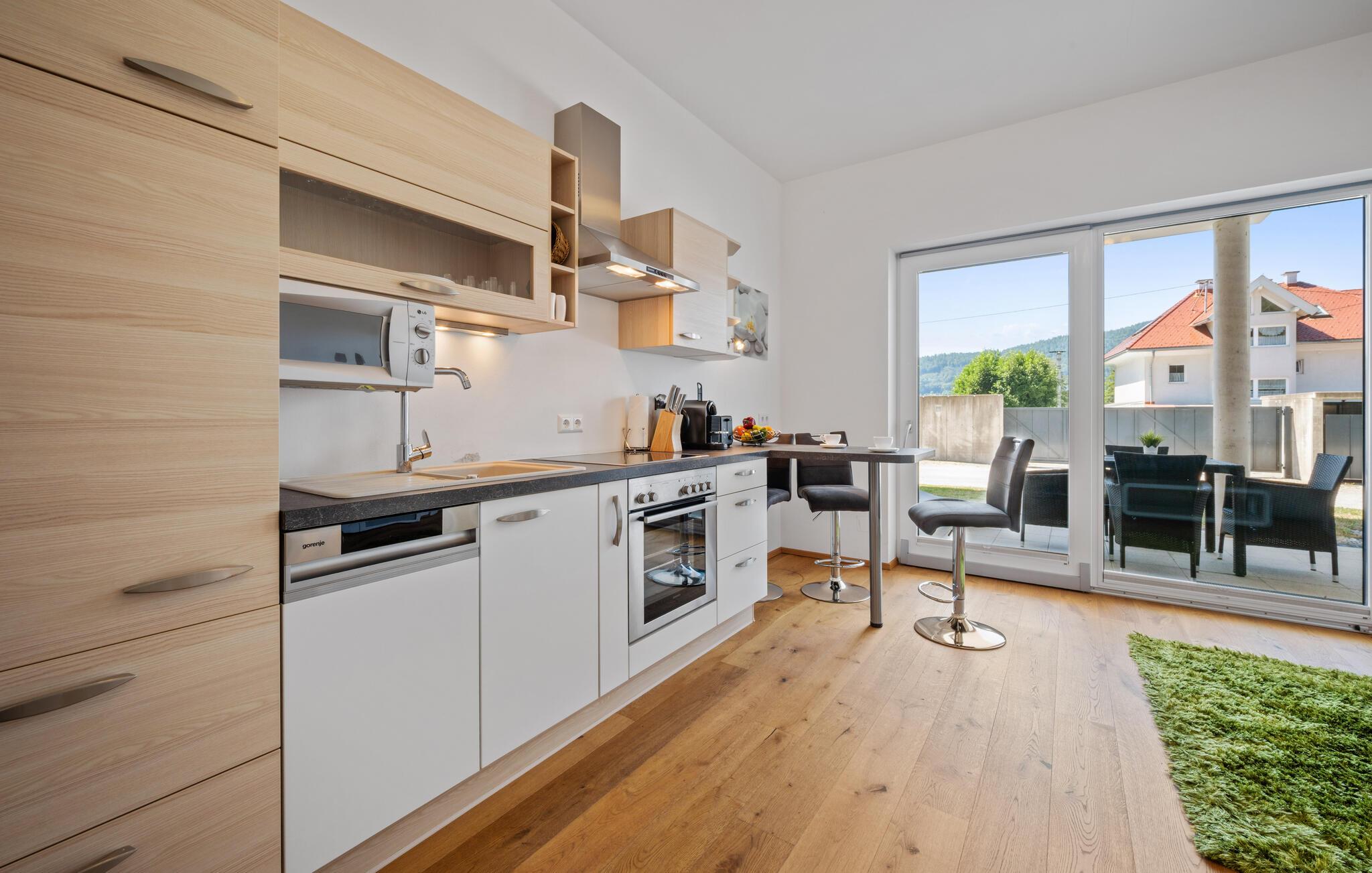 Sæt hverdagen på pause og tilbring en afslappende ferie i denne moderne lejlighed, der byder gæster velkommen med en fremragende beliggenhed til at udforske området og nyde smukke dage ved Wörthersee. Gør det behageligt i en stilfuld atmosfære og glæd jer til hyggelige aftener sammen med måltider, afslapning og gode samtaler.