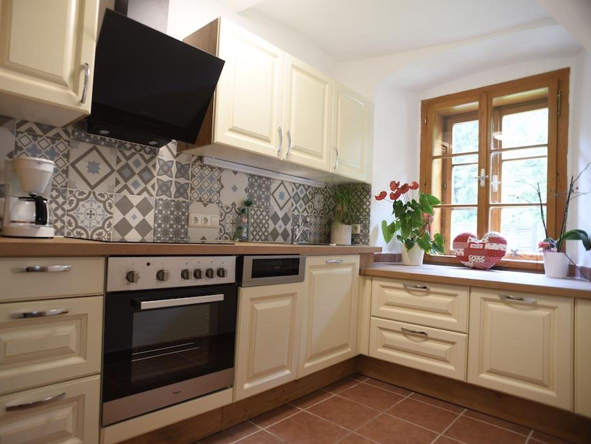 • eine getrennte Küche (voll ausgestattete DAN-Küche in Landhausstil mit Geschirrspüler, Ceranfeld, Backofen, …)