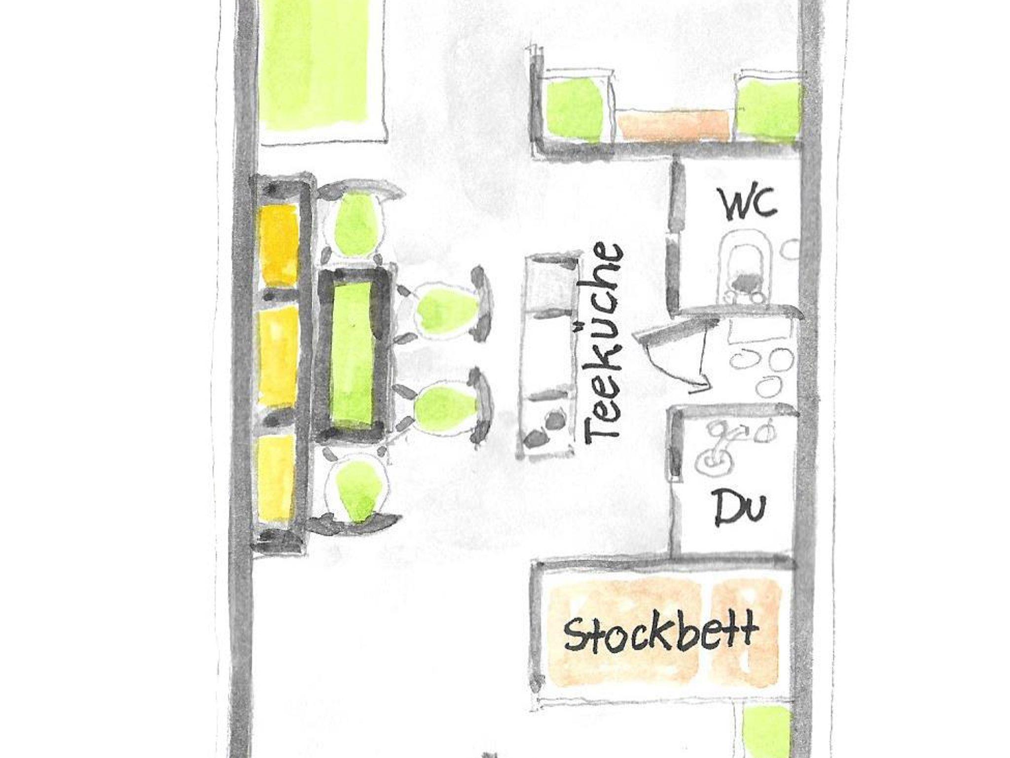 Darin befindet sich ein Schlafzimmer mit Doppelbett, sowie ein zweites Schlafzimmer mit 2 Stockbetten (4 Personen).