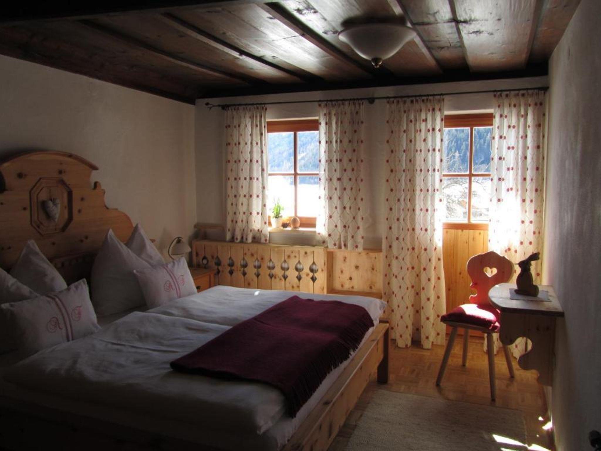 Gemütlich, hell und mit viel Holz eingerichtet, bietet die sonnseitig gelegene Ferienwohnung Sonnenblume Platz für 2 bis 4 Personen. Sie verfügt über ein Schlafzimmer und ein separates Kinderzimmer mit Stockbett, das sich direkt im privaten Bereich des Appartements – über den Gang – befindet.