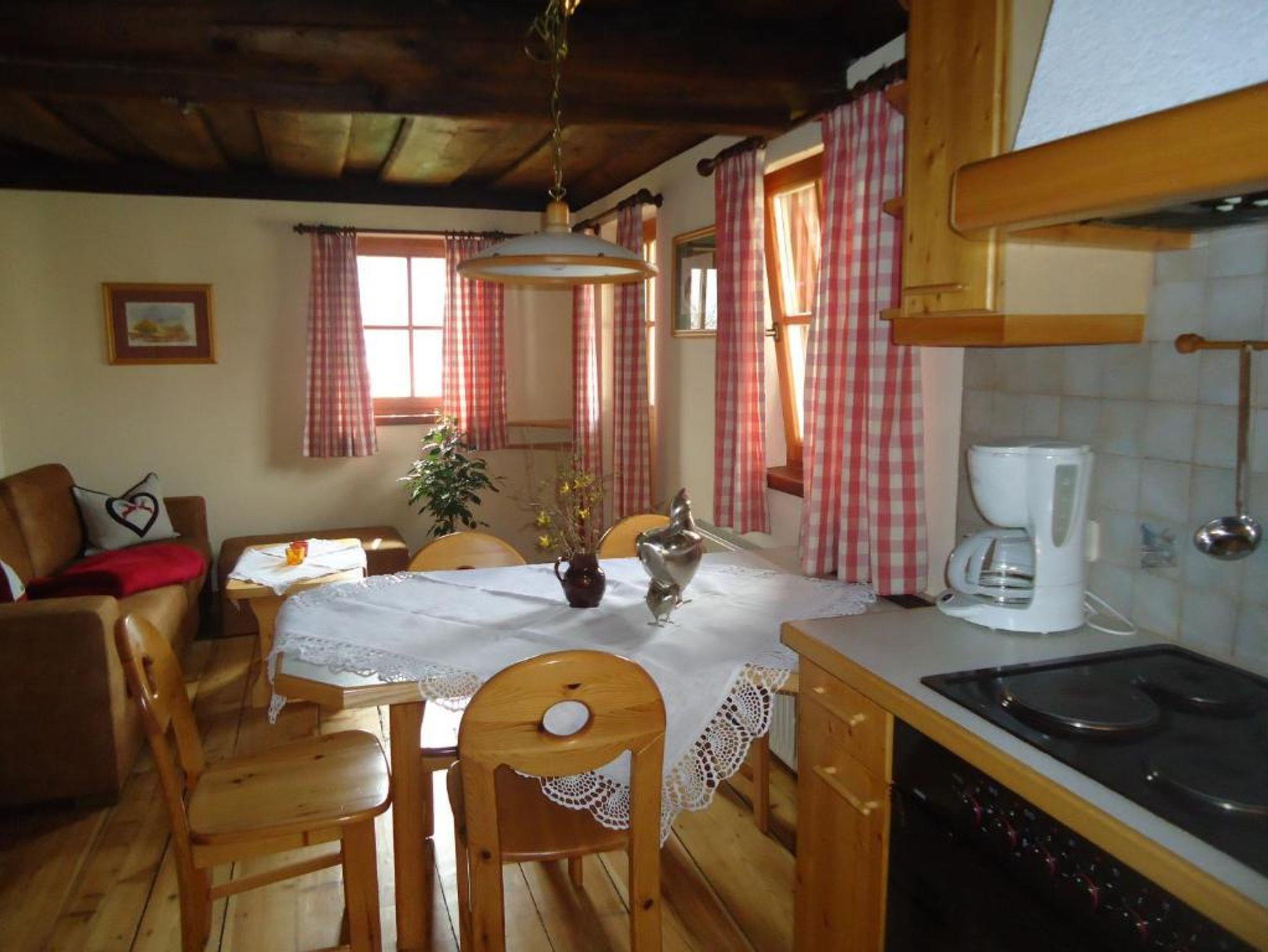 Der Wohnraum mit ausziehbarer Couch, Essecke und voll ausgestatteter Küche mit Geschirrspüler lädt zum Verweilen ein. Ein Balkon mit Ausblick, Dusche/WC und die heimelige Atmosphäre machen die Wohnung zum idealen Rückzugsort für Familien und Genießer.