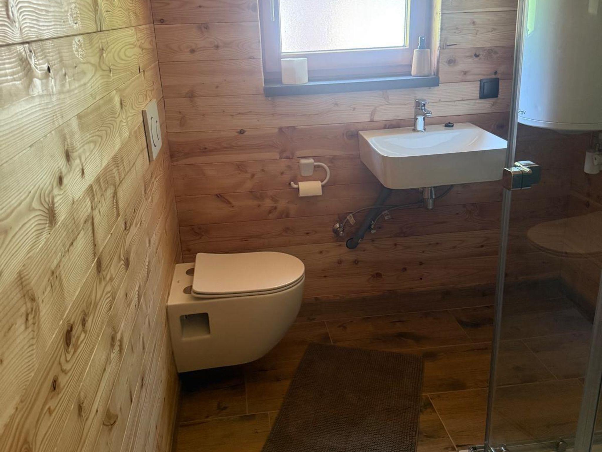 Das neu renovierte Badezimmer ist mit Dusche und WC ausgestattet. In der modernen Küche finden Sie alles, was Sie für die Selbstversorgung benötigen. Die Hütte kann elektrisch oder mit Holz geheizt werden. Der Wohnbereich lädt mit Sat-TV und behaglicher Atmosphäre zum Entspannen ein.