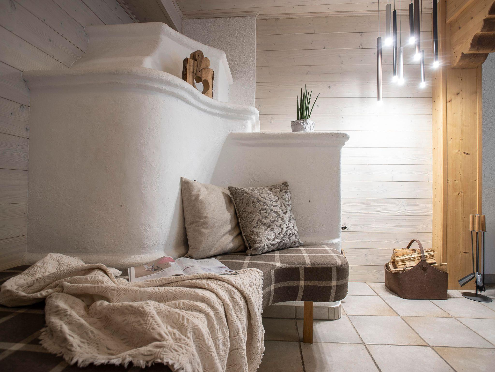 Neu renovierte Ferienwohnung für 2 Personen im alpinen Stil mit 1 Schlafzimmer, Bad mit Dusche und Badewanne und separater Toilette, einem gemütlichen Wohnraum mit Sitzgruppe und Kachelofen, komplett ausgestatteter Küche sowie Terrasse mit kleinem Garten.