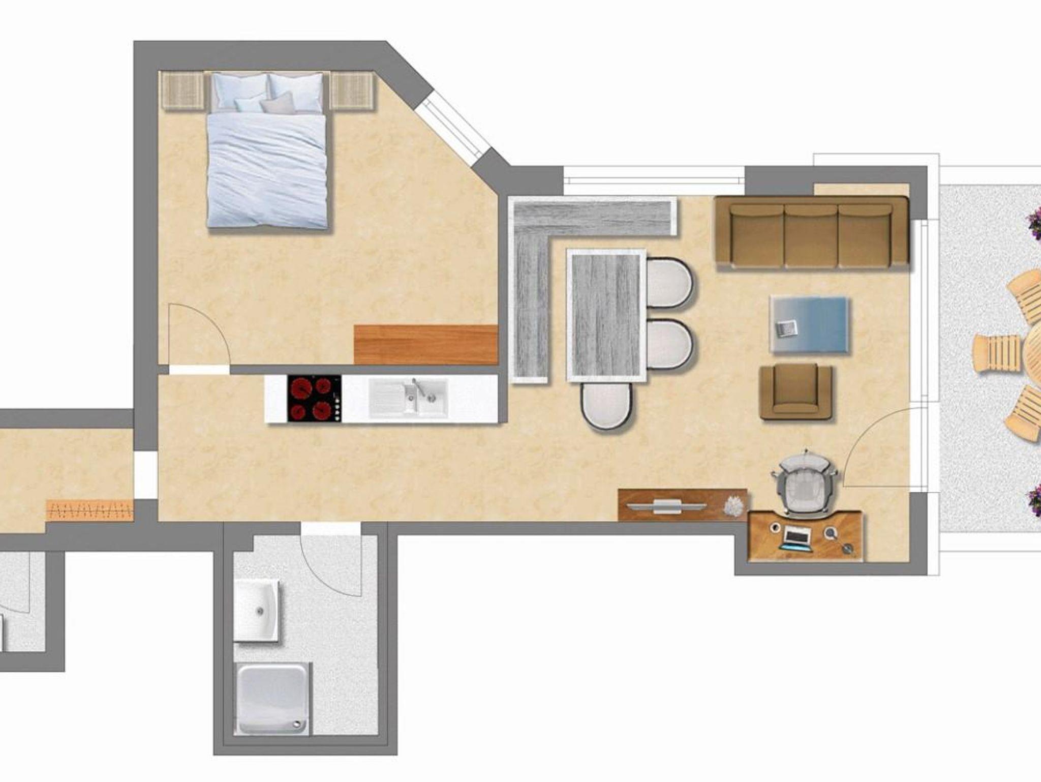 Ferienwohnung Lilie - moderne Ferienwohnung mit Kompfort und Stil - Schlafzimmer, heller Wohnraum mit ausziehbarer Doppelcouch, voll ausgestattete Küchenzeile, Badezimmer mit Dusche, separates WC, Vorraum und Terrasse. Das wunderschöne, neue Appartement im Montana wird Sie begeistern.