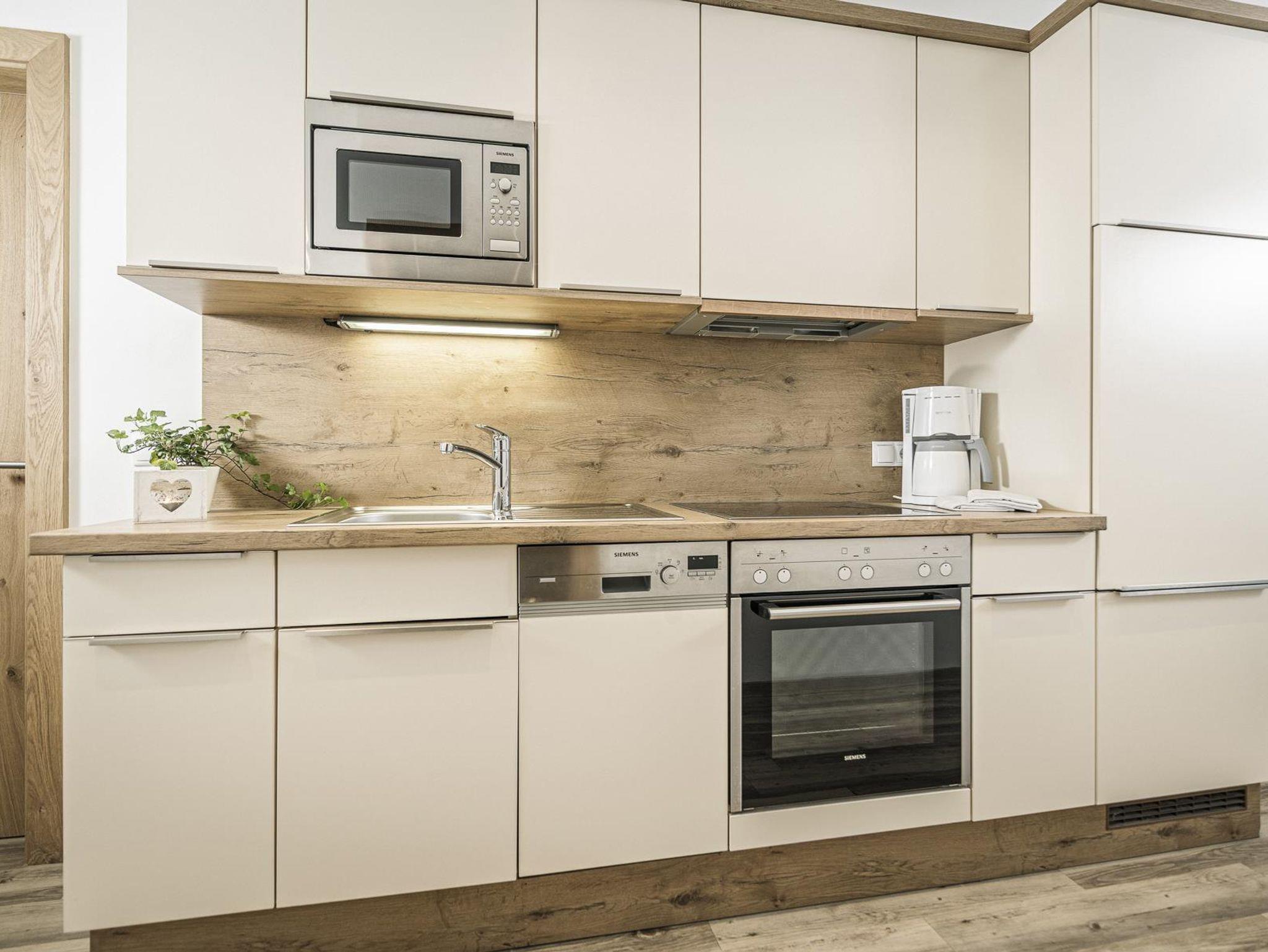 (E-Herd, Mikrowelle, Kühlschrank, Geschirrspüler, Wasserkocher, Kaffeemaschine, Toaster, Geschirr)