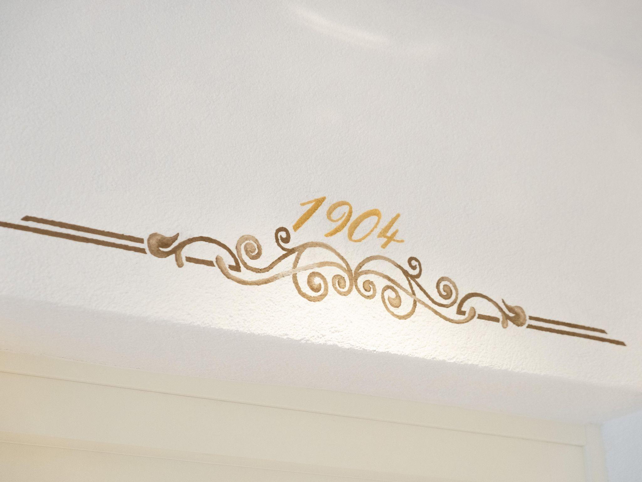 Ferienwohnung 1926 Die Ferienwohnung 1926 liegt ebenfalls im Erdgeschoß und hat 45 Quadratmeter. Sie bietet einen Wohnsalon mit Bettsofa und einen Essbereich mit offener Küche im klassischen Villen-Charakter. Im gemütlichen Schlafzimmer erwacht man mit dem traumhaften Blick auf die von den sonnengeküssten Berggipfeln. Das Badezimmer erweist einen besonderen Flair mit einer begehbaren Dusche, einem Waschtisch sowie einer separaten Toilette.