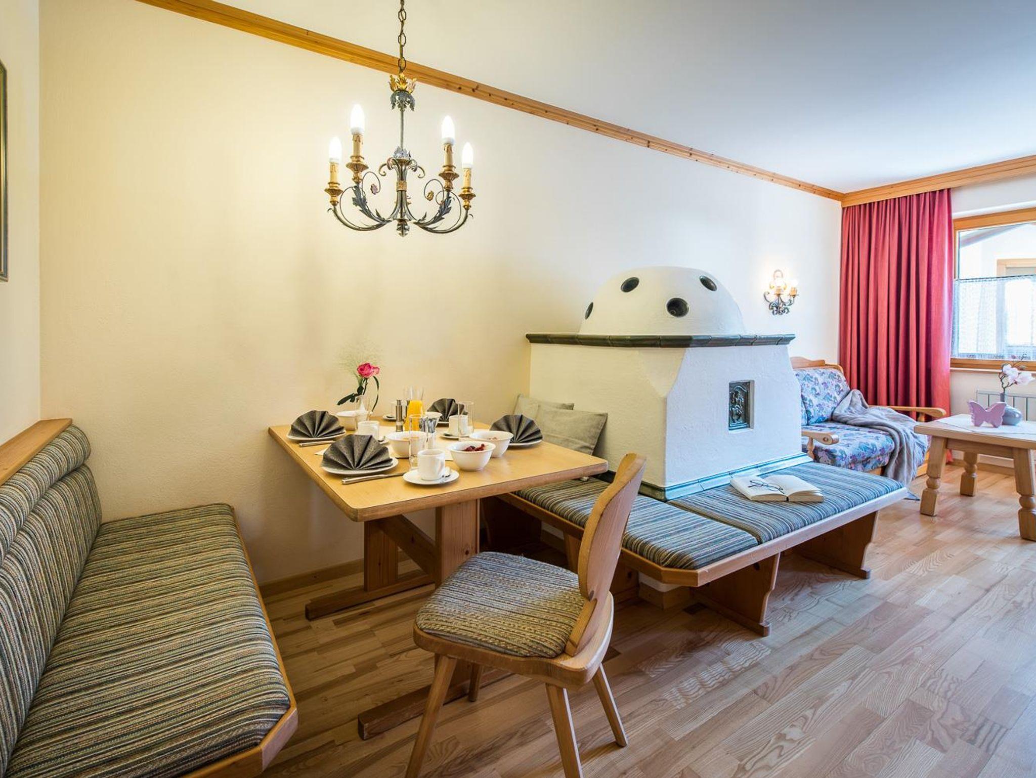 Unsere Appartements mit ein bis zwei Schlafzimmern sind alle mit dem Personenlift erreichbar und mit Parkettboden, Sat-TV, WLAN, Festnetztelefon und Safe ausgestattet. Die Wohnungen sind mit einer voll ausgestatteten Küche mit Mikrowelle, Filterkaffeemaschine, Wasserkocher, E-Herd mit Backrohr und Geschirrspüler sowie kompletter Geschirr- und Wäscheausstattung eingerichtet. Ein Rad- und Skiraum mit Schuhtrockner und Parkplatz sind
