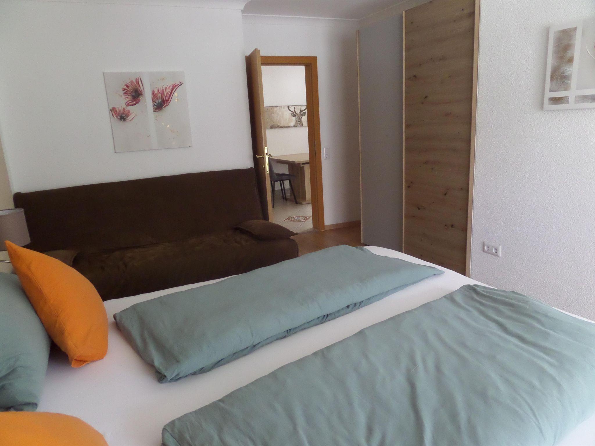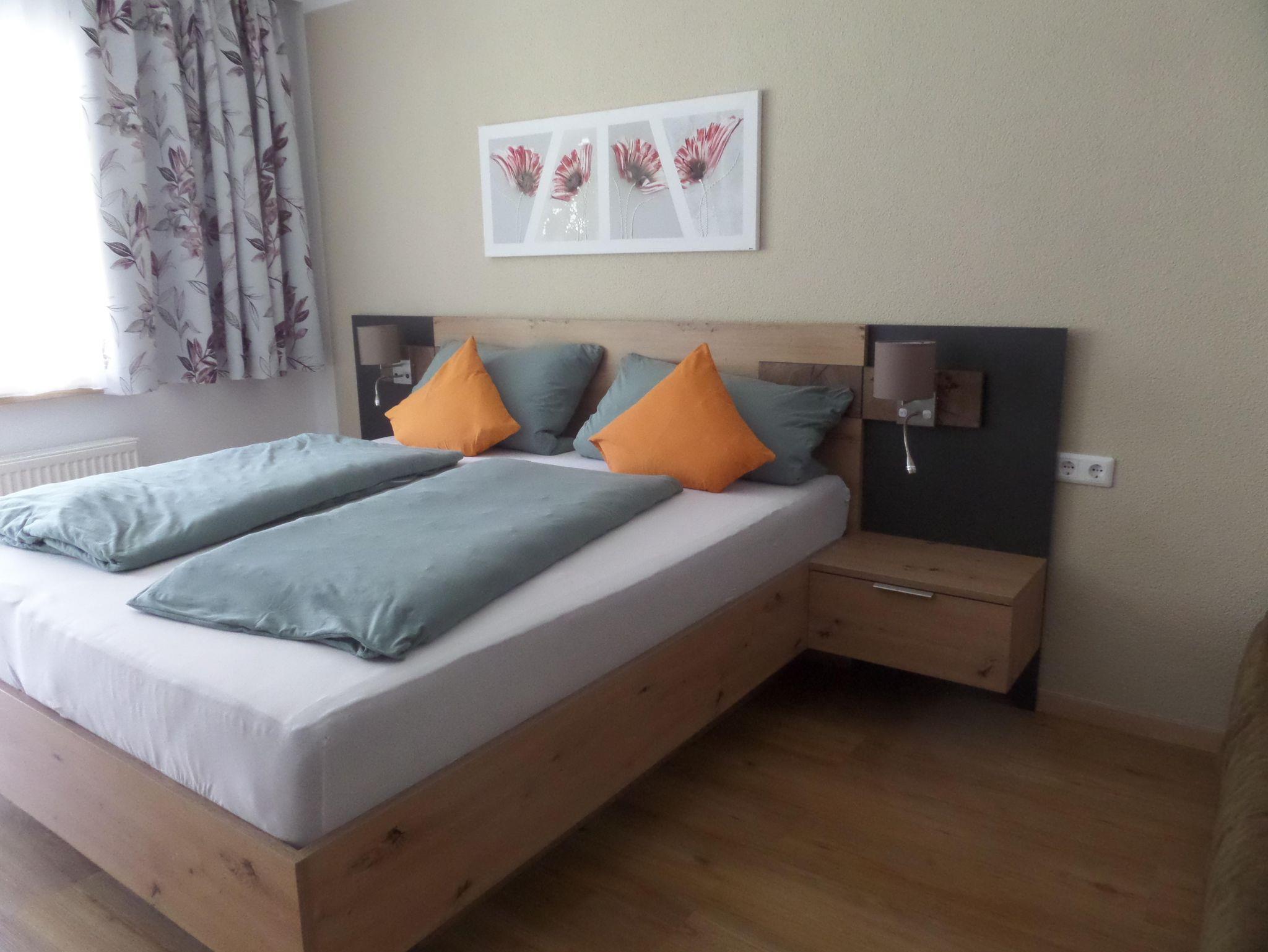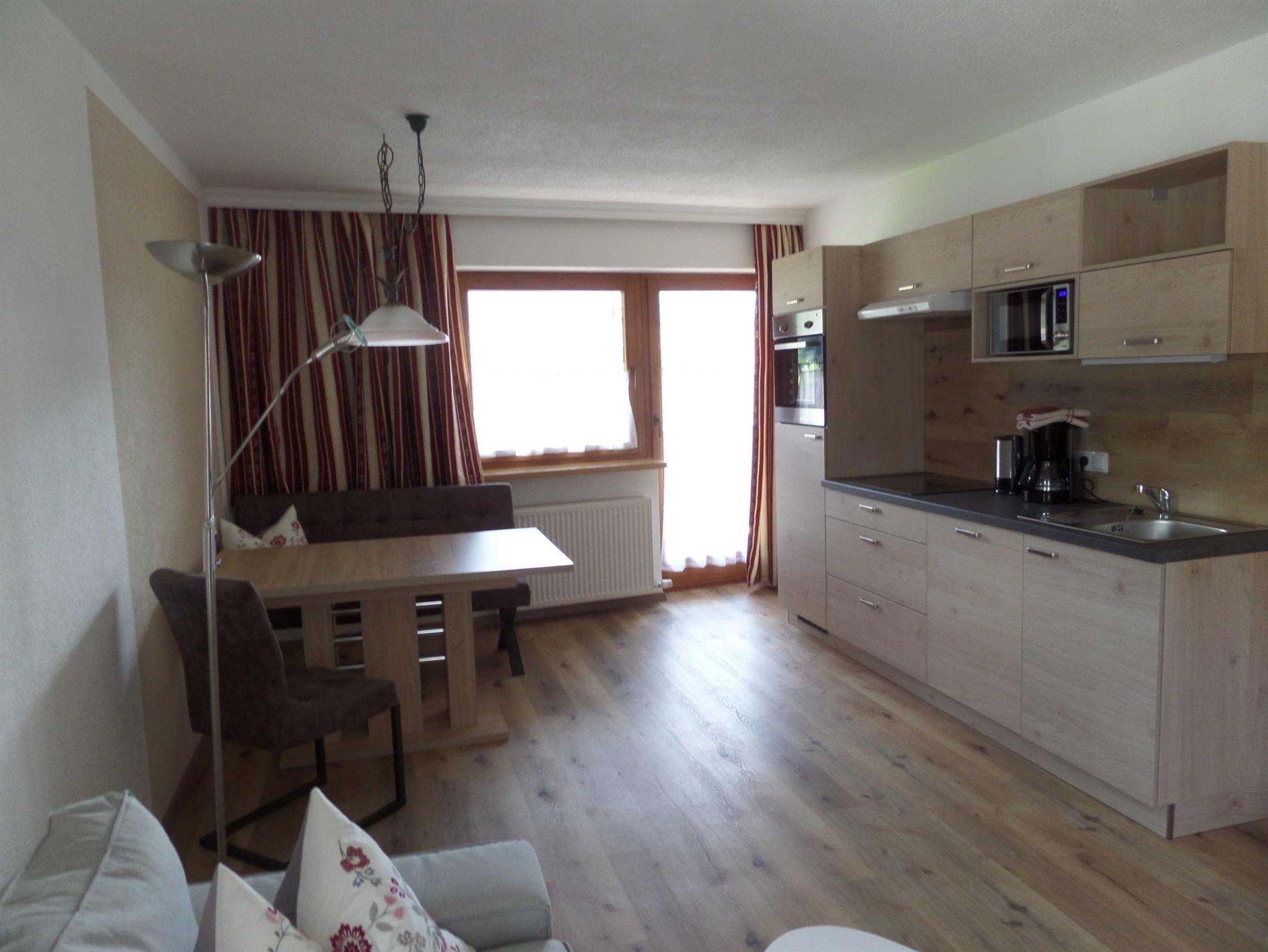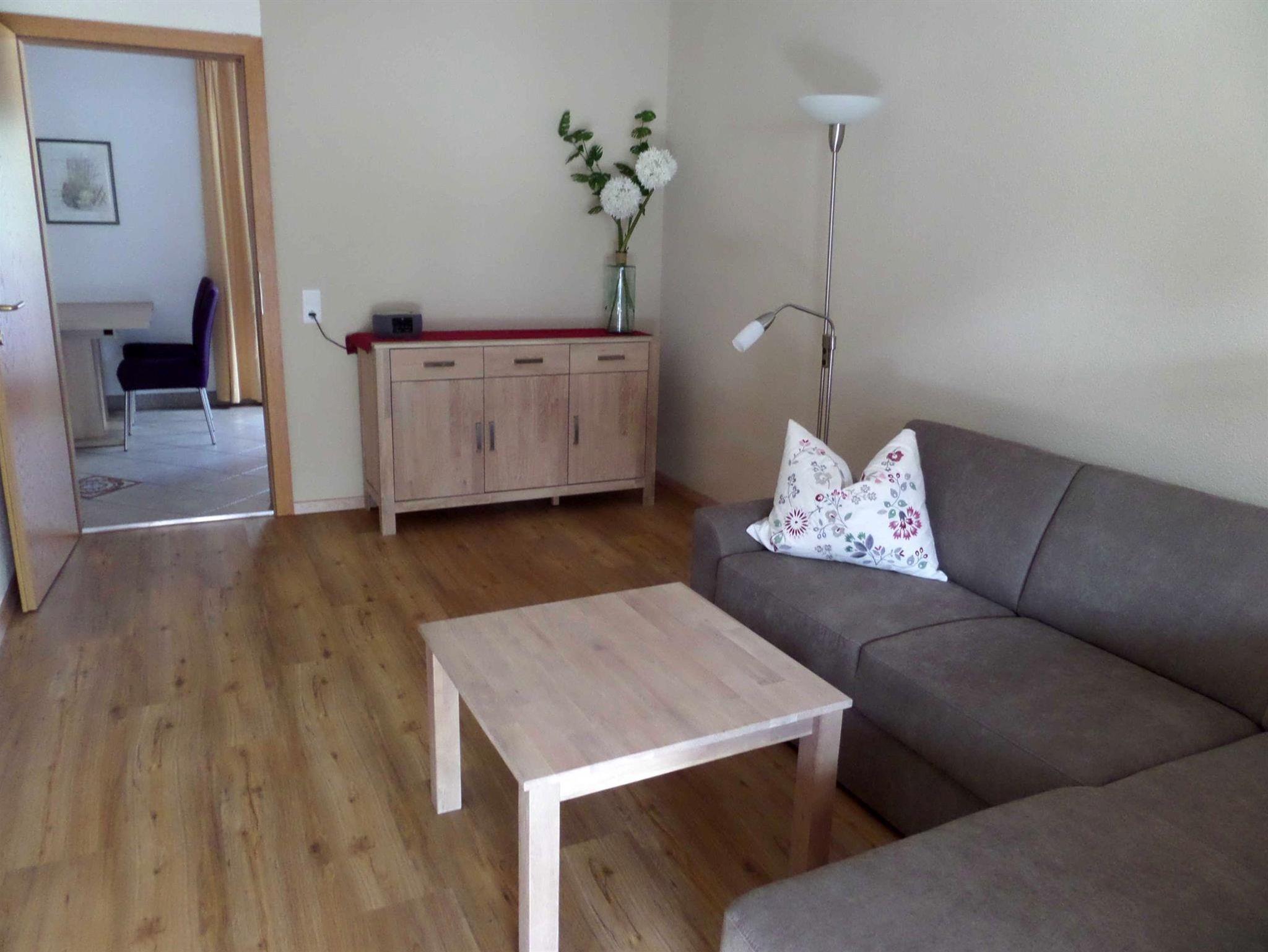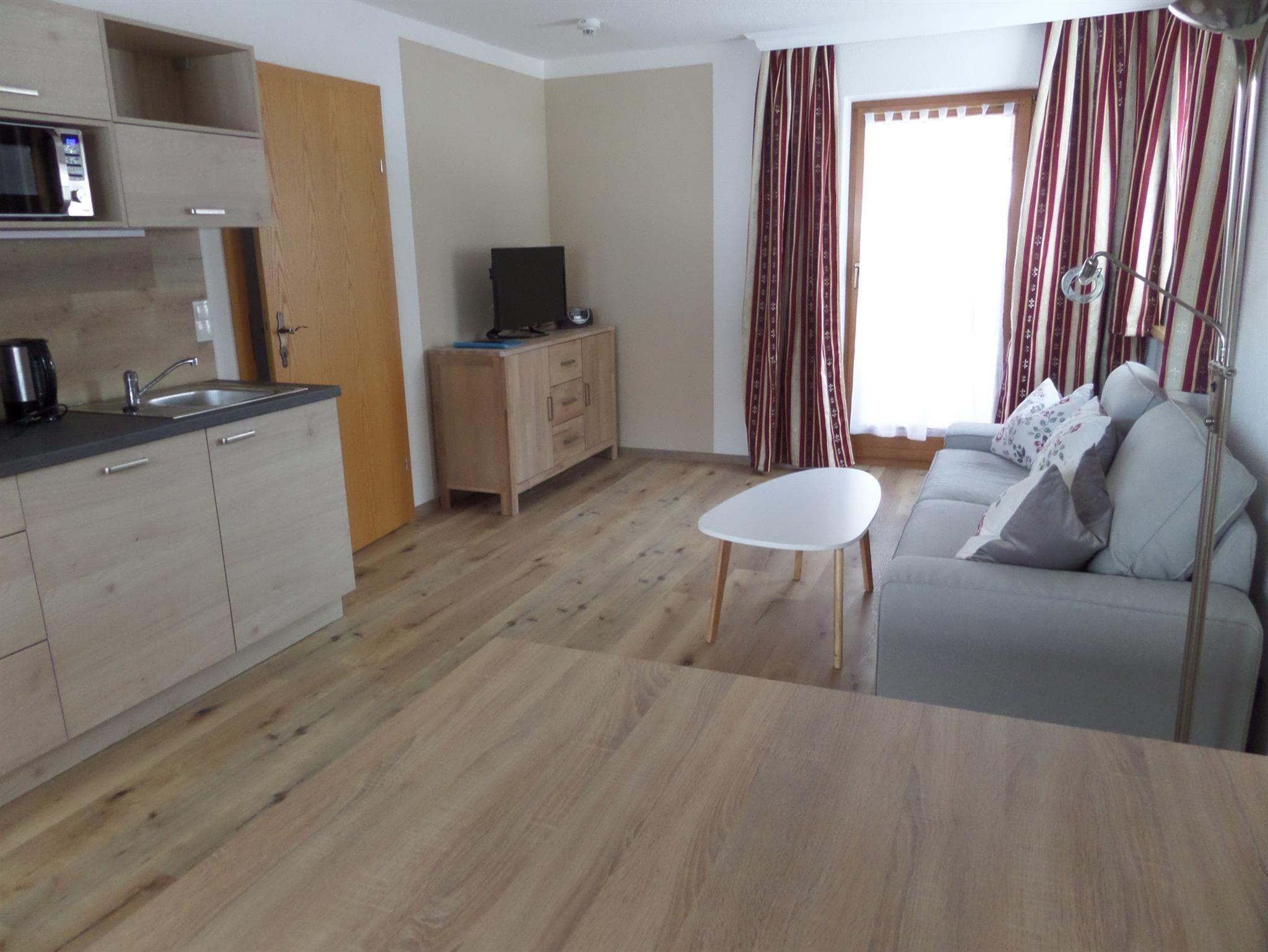 Die Appartements haben eine Wohnküche mit Küchenzeile, großem Esstisch und einer gemütlichen Couch. Die Couch kann ausgezogen werden. Im Schlafzimmer ist ein Doppelbett. Im Schrank ist ein Tresor.