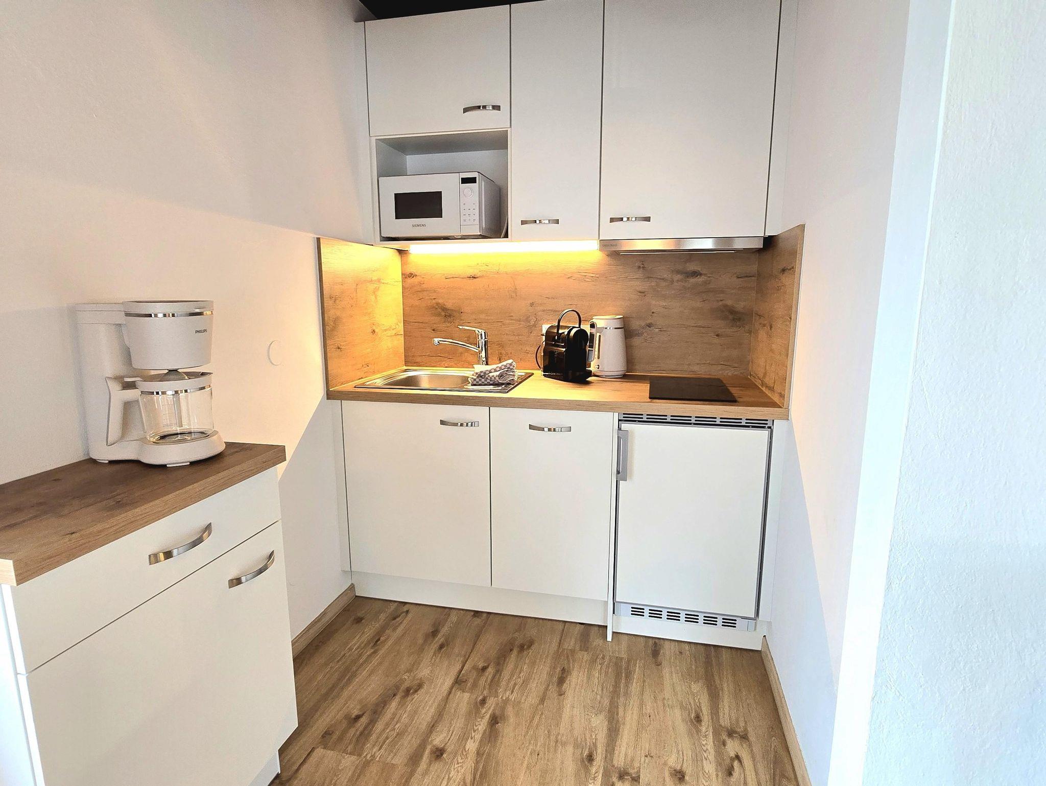 • Einer voll ausgestatteten Küchenzeile mit allen wichtigen Geräten und Utensilien.