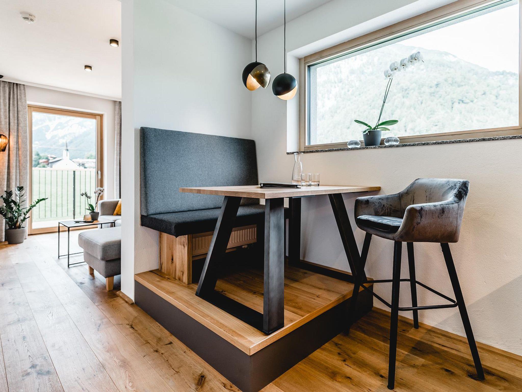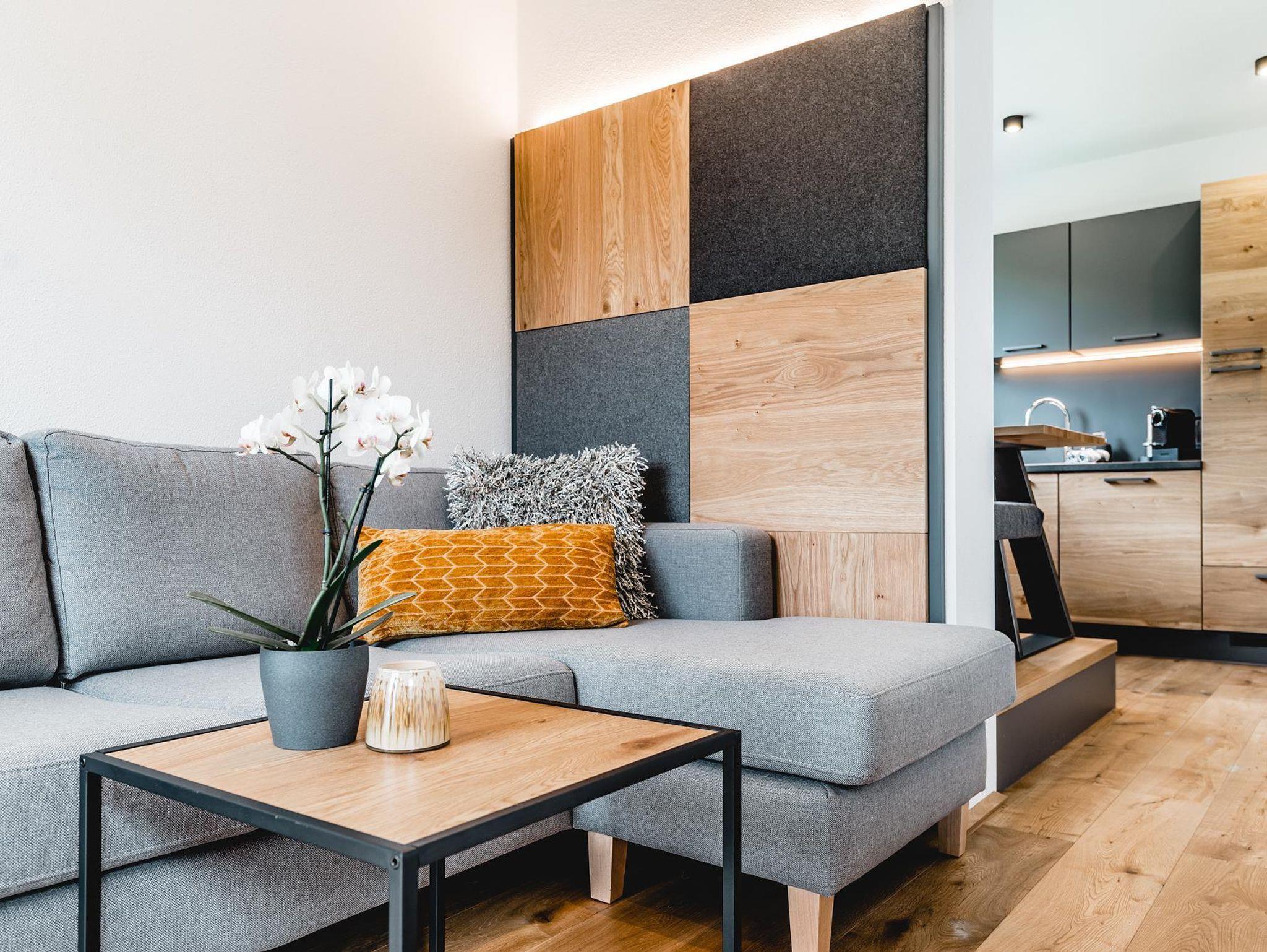 Beim Designkonzept der Apartments lag besonderes Augenmerk auf Gemütlichkeit und Wohnkomfort. Warme Farbtöne und natürliche Materialien verleihen dem Cabin8 das moderne und alpine Flair. Wir freuen uns Sie bei uns begrüßen zu dürfen!