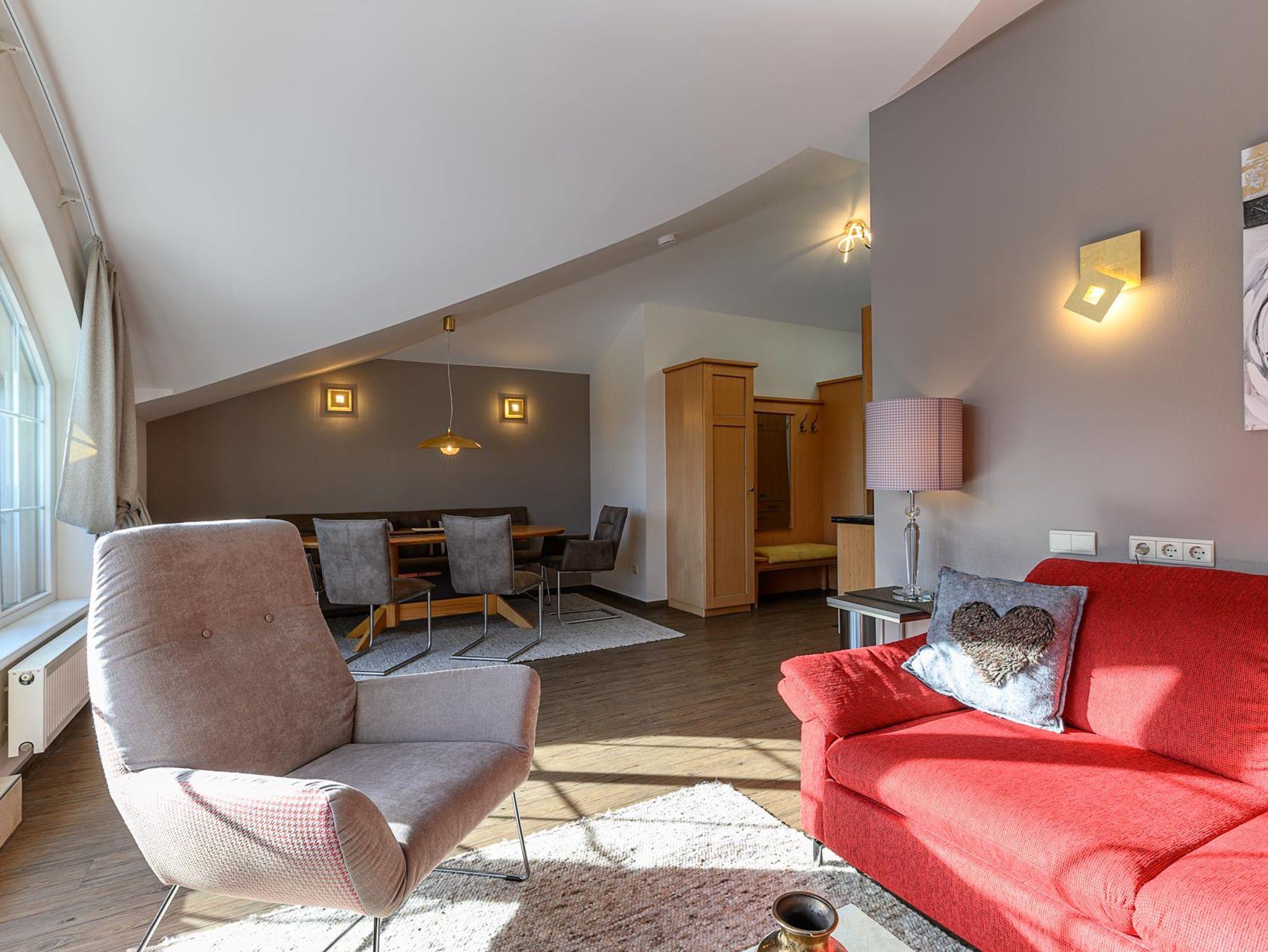 Das 15m² große Doppelzimmer ist ausgestattet miti Dusche, WC, Sitzecke, Sat-TV und Balkon.