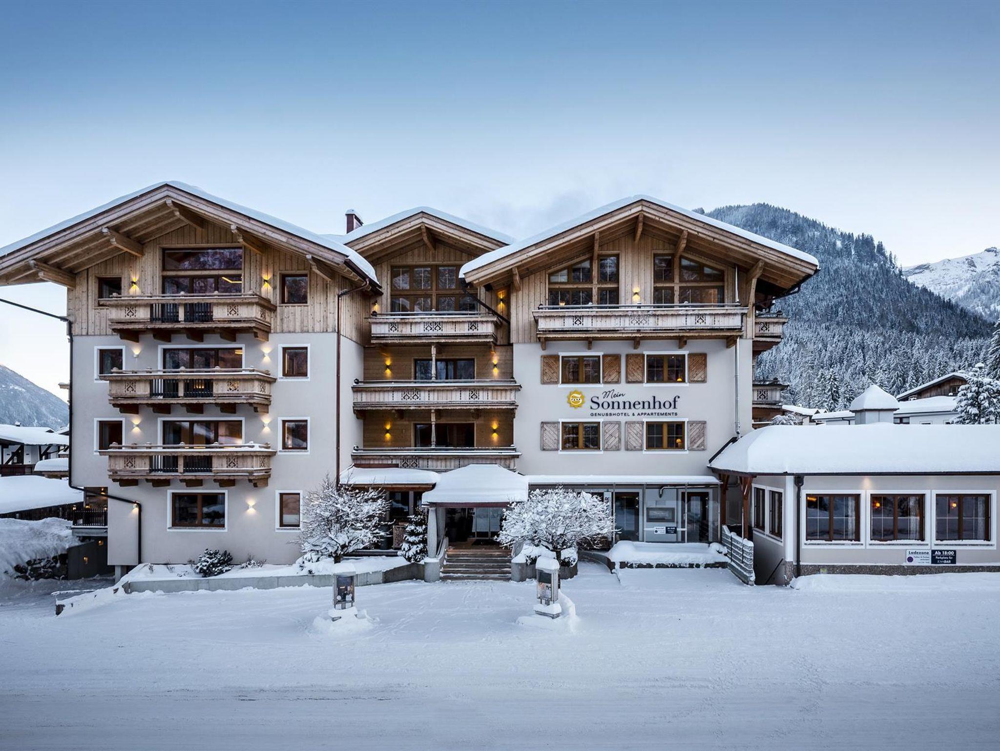 Im privat geführten Genusshotel Sonnenhof erwarten Sie 27 Zimmer, Suiten und 10 Ferienwohnungen - alpiner Charme, gemütlich & naturverbunden. Alle Zimmer bieten einen imposanten Ausblick auf die umliegende Tiroler Bergwelt. Kostenfreie Parkplätze & gratis W-LAN im gesamten Hotel.