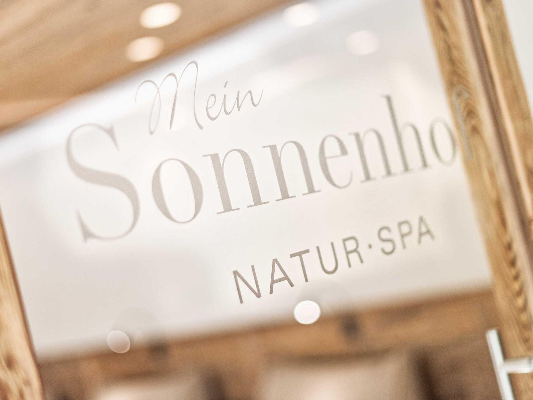 Im Einklang mit der alpinen Natur erholen Sie sich im großzügigen & mit viel Liebe zum Detail gestalteten NATUR SPA Wellnessbereich. Entspannen Sie umgeben von heimischen Hölzern, natürlichen Stoffen und vielen liebevollen Details – Der Sonnenhof NATUR SPA mit Finnischer Außensauna, Kräuter-Biosauna, Meersalz-Infrarotkabine & Aroma-Dampfbad. Gemütliche Ruheräume mit warmen Wasserbetten und Kuschelecken laden zum Entspannen ein! Der Sonnenhof bietet eine feine Auswahl ausgesuchter Massageanwendungen.