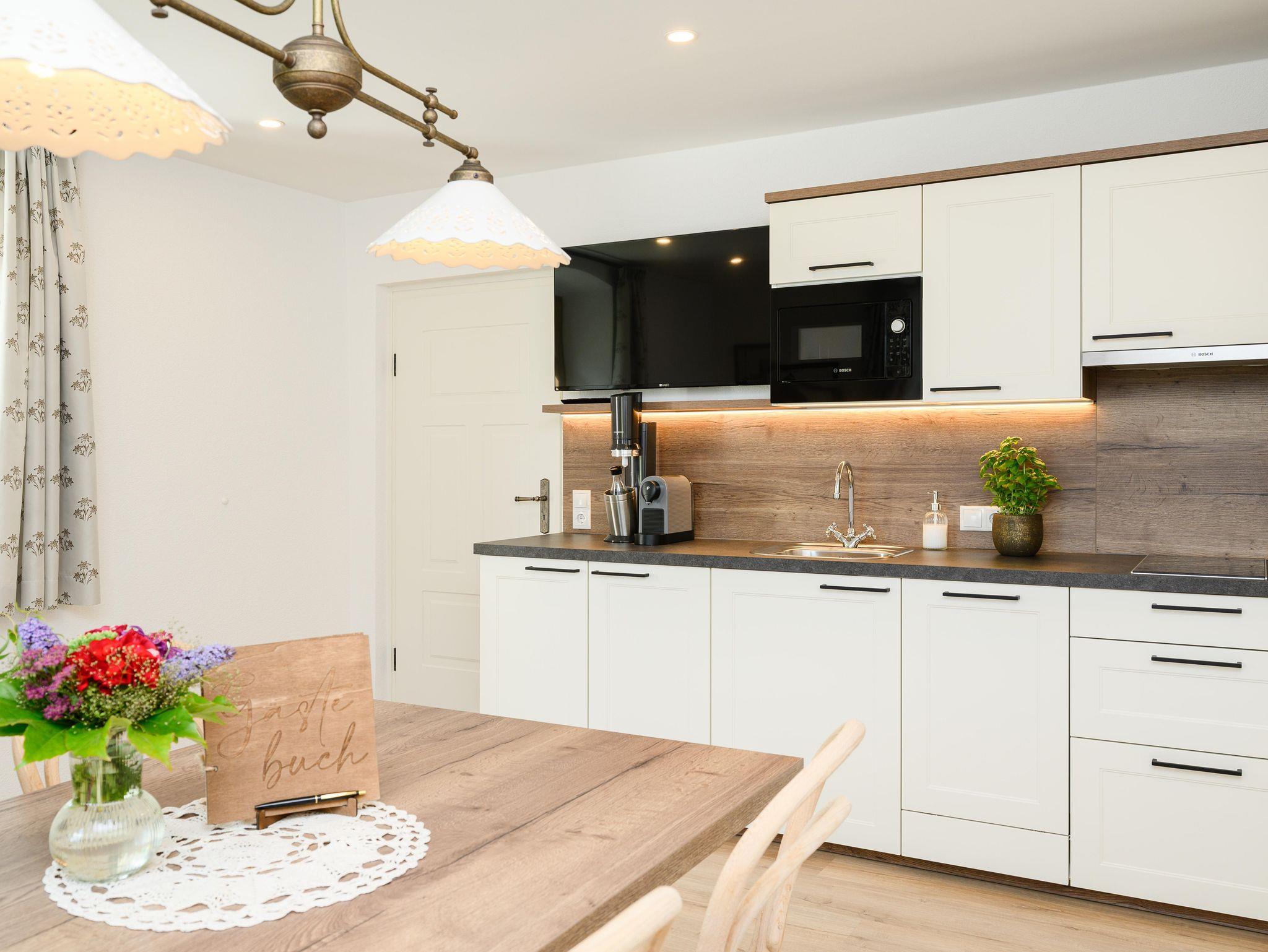 Ferienwohnung 1904 Die Ferienwohnung 1904 befindet sich im Erdgeschoß und bietet ihnen Urlaubserlebnis auf geräumigen 45 Quadratmetern. Die Ferienwohnung verfügt über einen Salon mit Wohn- und Essbereich, Bettsofa, offener und voll ausgestatteter Stilküche. Zum Träumen ladet das im kuschligen Ambiente eingerichtete Schlafzimmer ein. Im eleganten Badezimmer finden sich eine großzügige Dusche und ein Waschtisch sowie eine separate Toilette.
