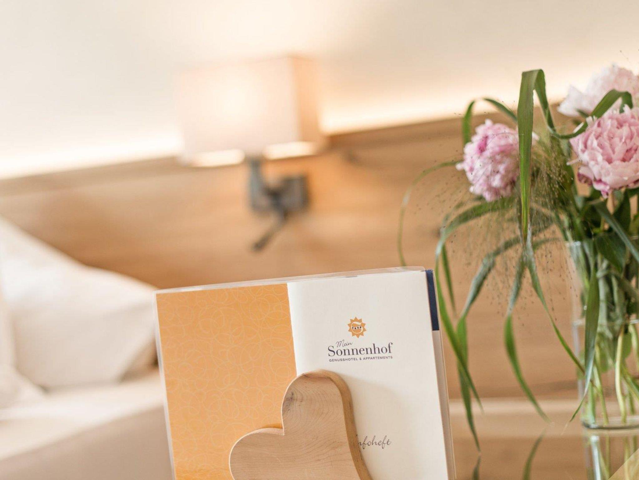 Im privat geführten Genusshotel Sonnenhof erwarten Sie 27 Zimmer, Suiten und 10 Ferienwohnungen - alpiner Charme, gemütlich & naturverbunden. Alle Zimmer bieten einen imposanten Ausblick auf die umliegende Tiroler Bergwelt. Kostenfreie Parkplätze & gratis W-LAN im gesamten Hotel.