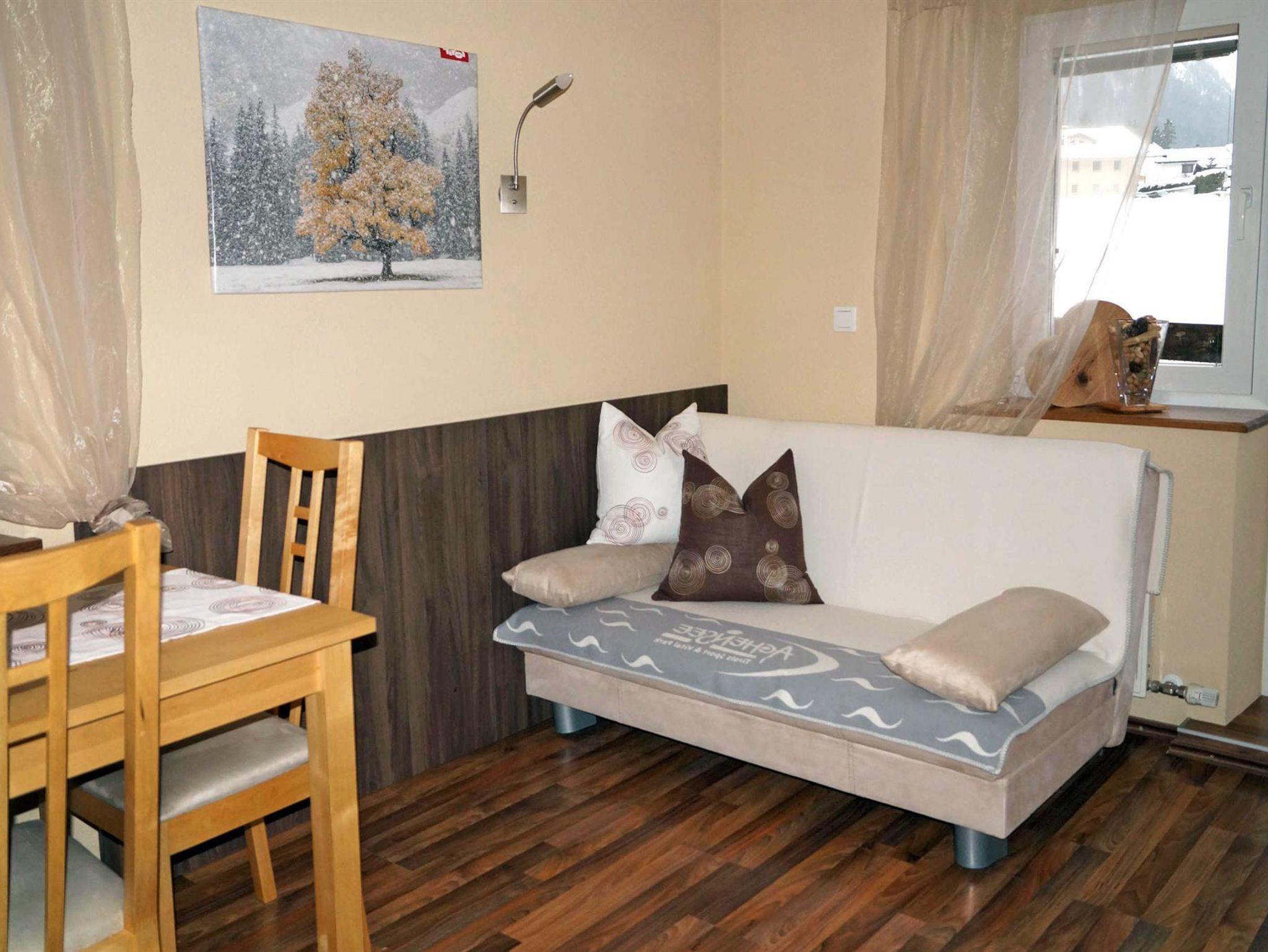 Die 45m² große Ferienwohnung ist eingerichtet mit einer komfortablen Wohnküche mit Geschirrspüler, Mikro, Backrohr, ausziehbarer Doppelschlafcouch, 1 Schlafzimmer, Bad/Dusche, WC, Vorraum, Radio, Sat-TV und kostenlosen Internetanschluss. Unser Haus verfügt über Tiroler Rodeln, welche Sie gerne kostenlos nutzen dürfen.