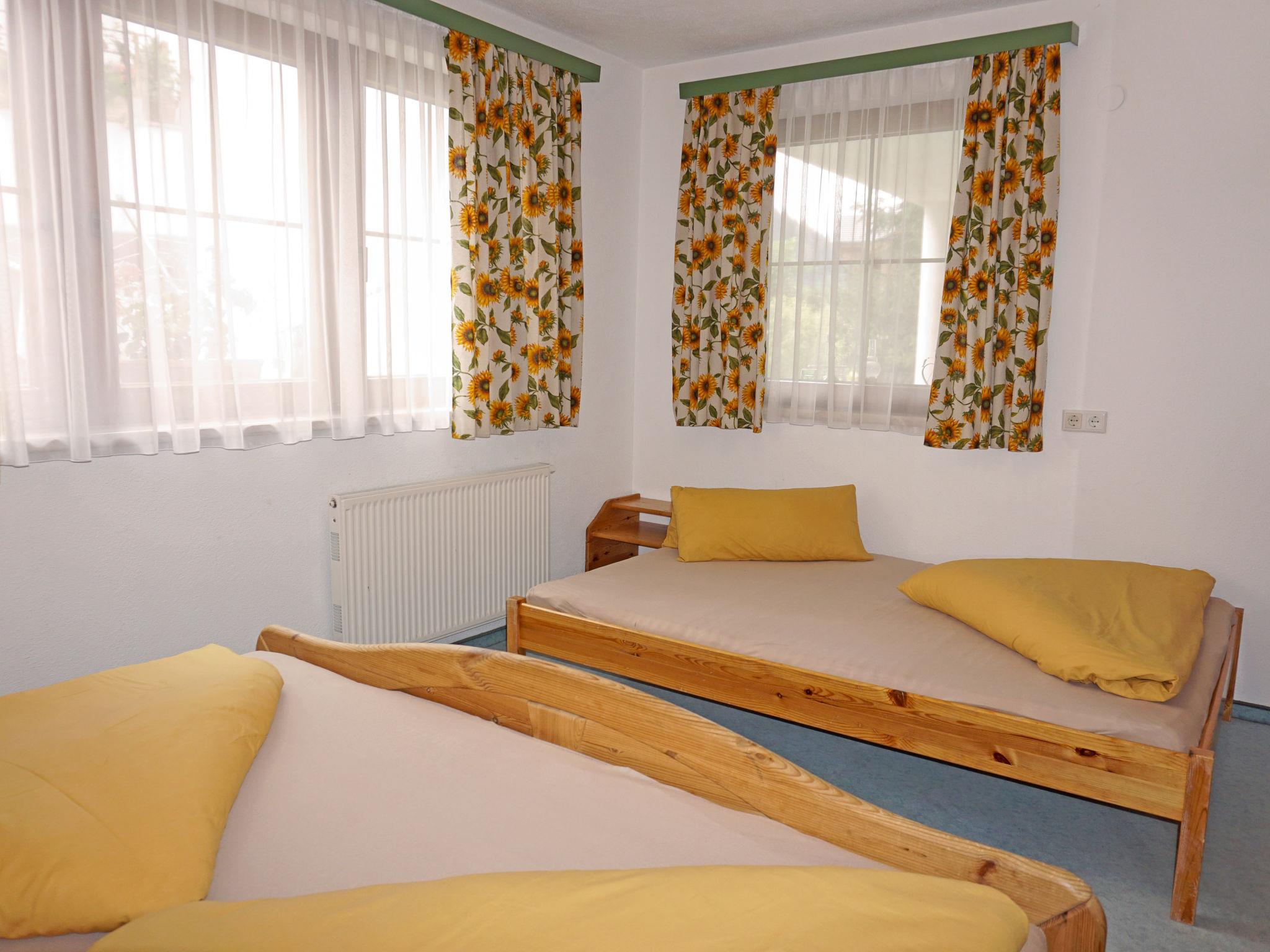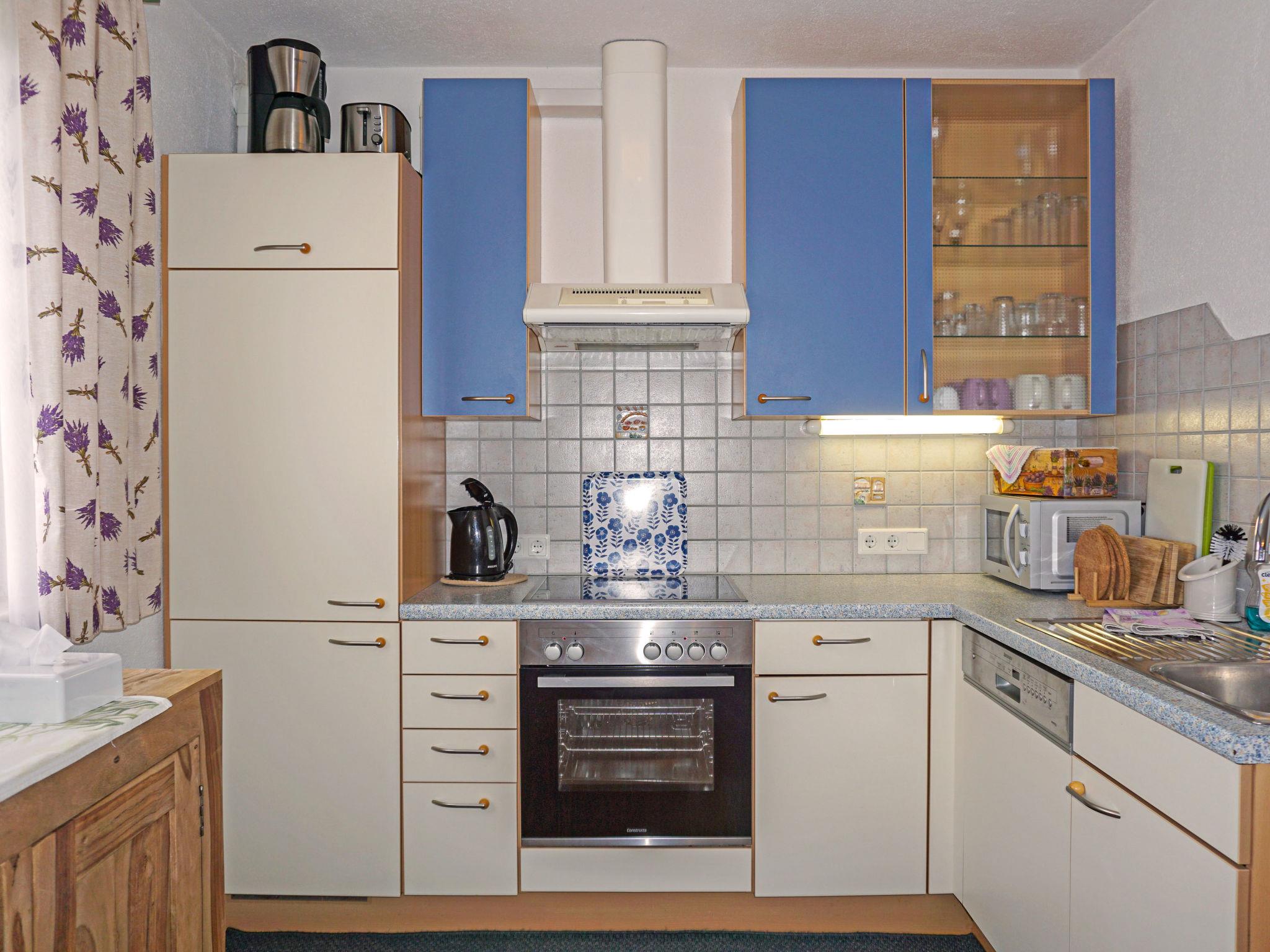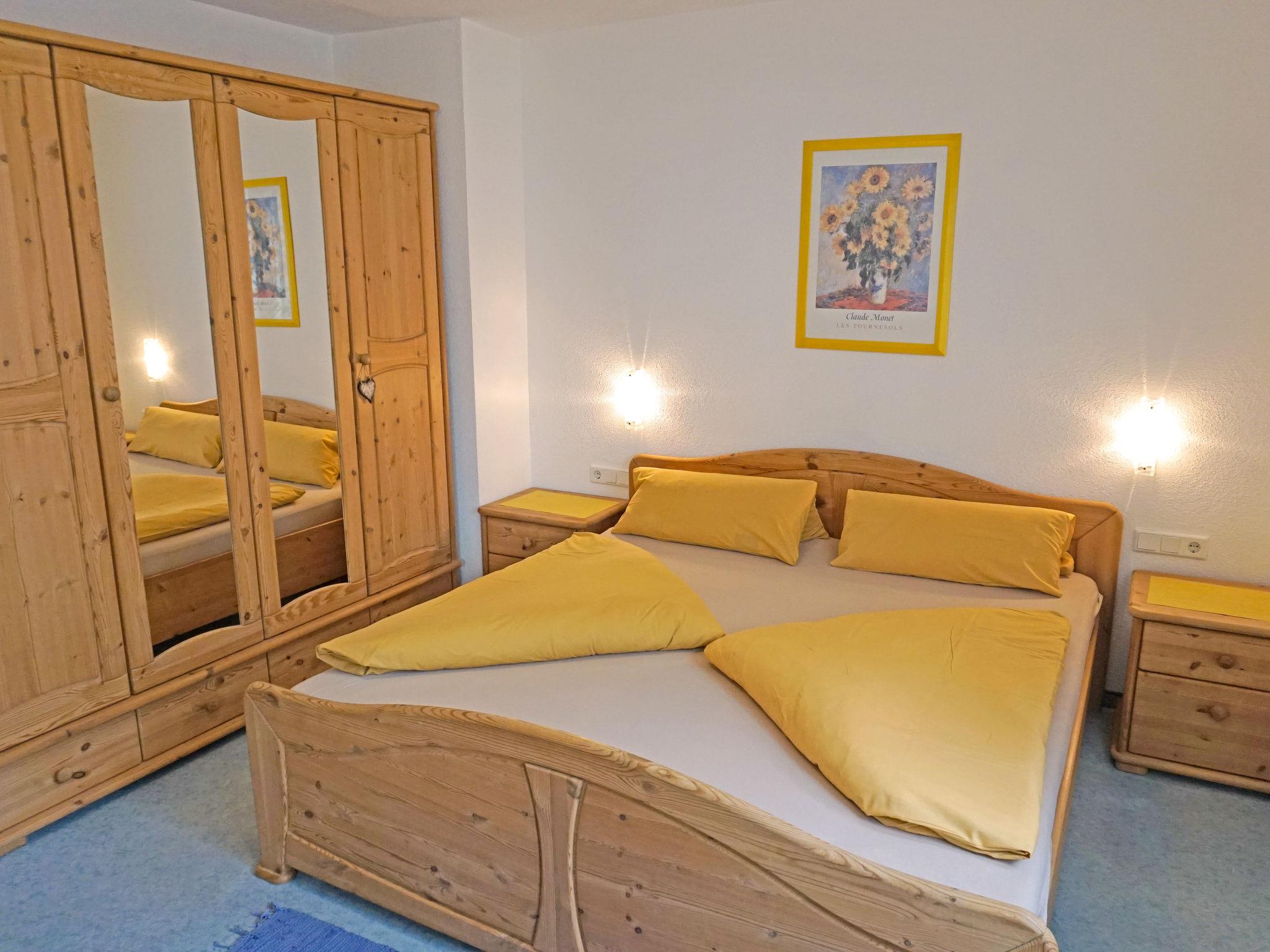 "Christina", 3-room apartment 80 m2 on 1st floor. Cosy furnishings: entrance hall. 1 double bedroom with shower/WC and double hand-basin. 1 room with 1 french bed (140 cm, length 200 cm), 1 double bed (180 cm, length 200 cm). Kitchen-/living room (4 hot plates, oven, dishwasher, microwave) with 1 sofabed, dining nook and cable TV (flat screen). Exit to the garden. Shower, sep. WC. Terrace, garden. Terrace furniture. View of the resort. Facilities: Internet (WiFi). Please note: non-smokers only. Smoke alarm. Attention: French bed 140 cm in the double room more suitable for children! Additionally there is 1 couch.