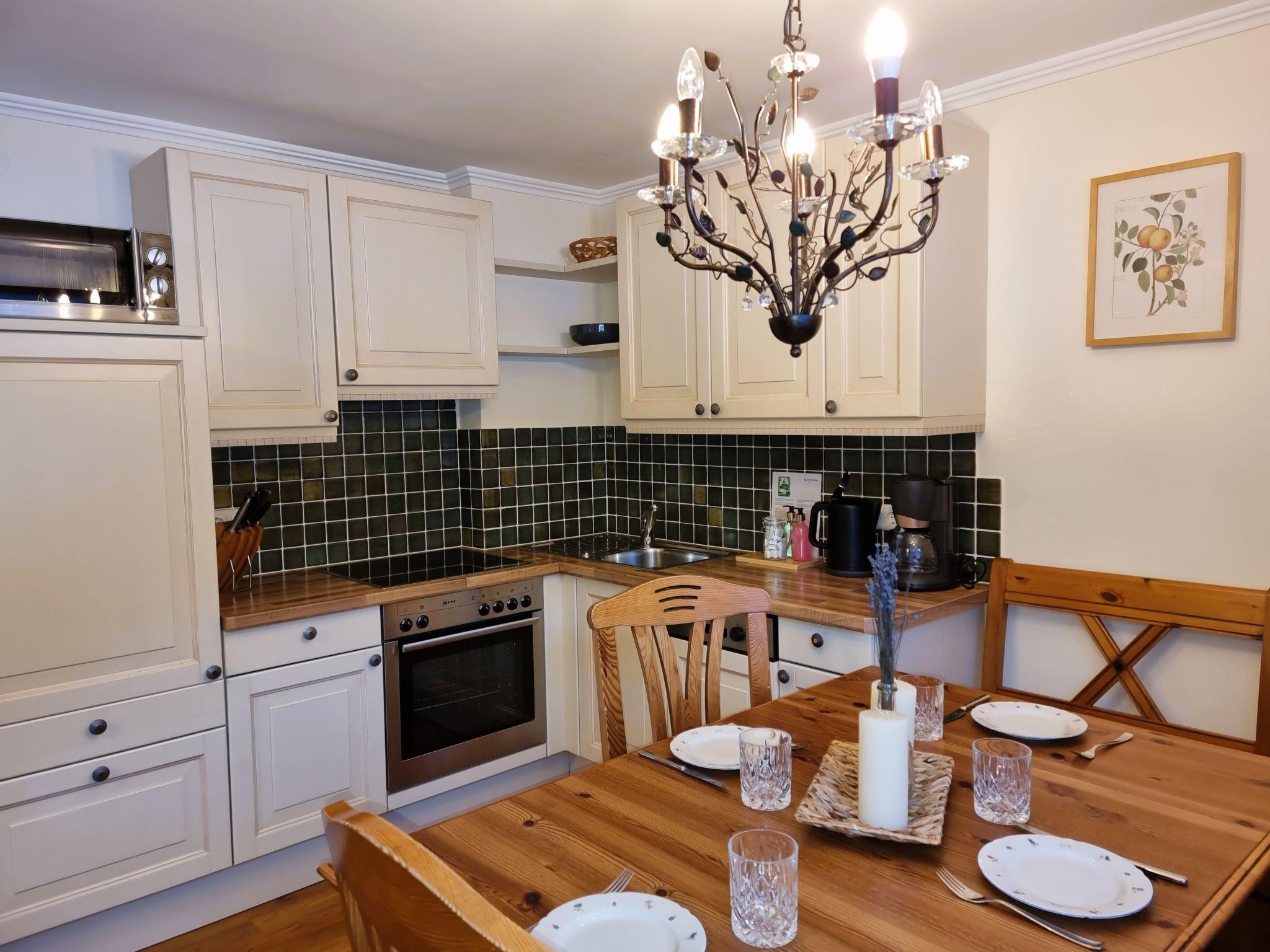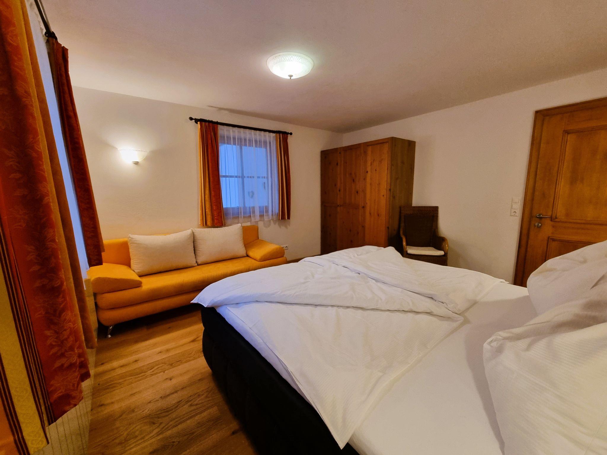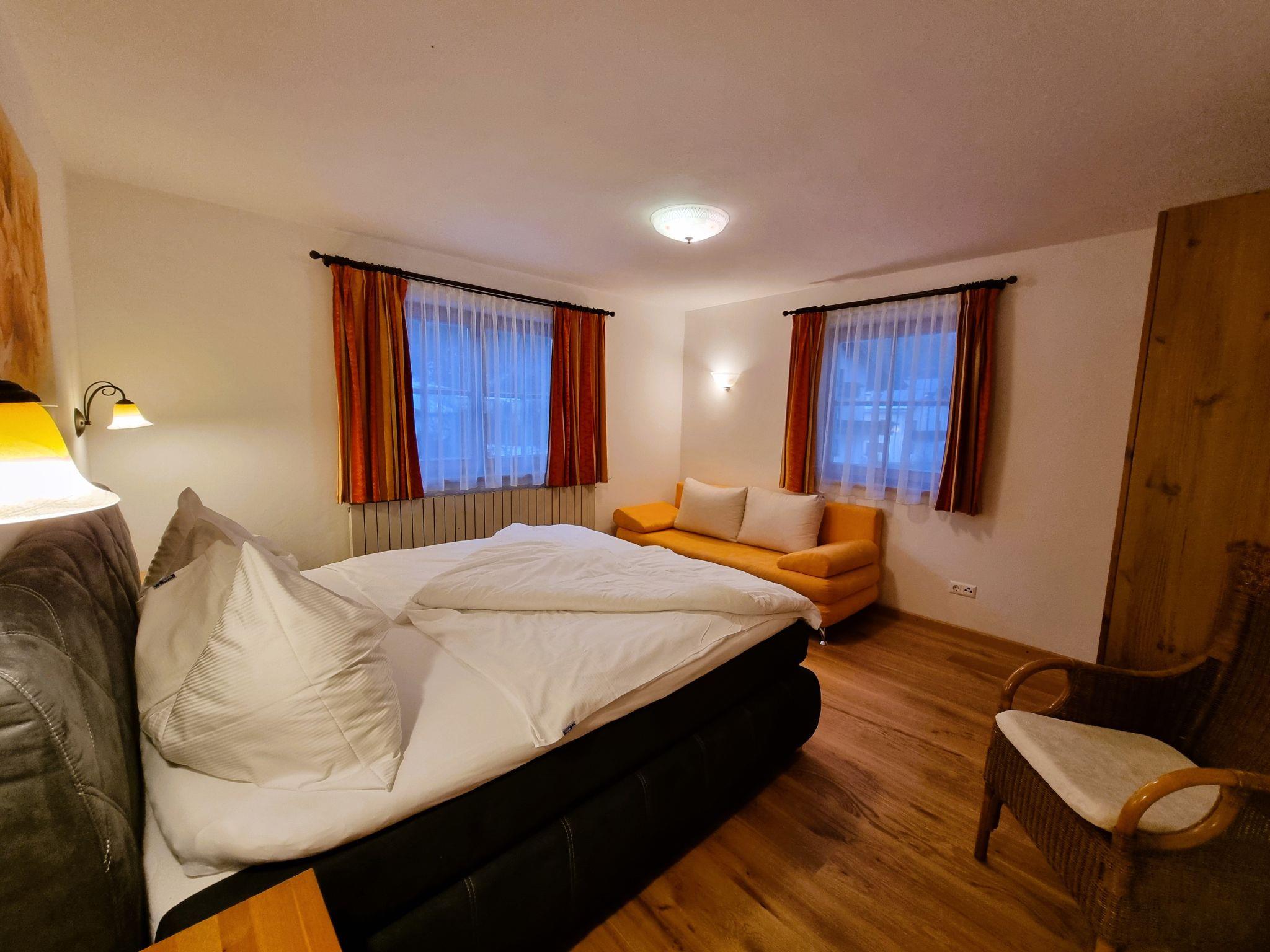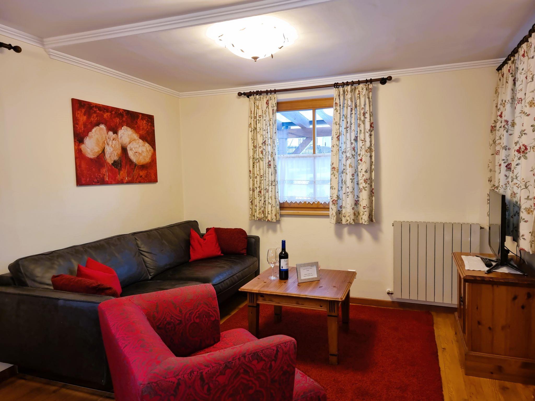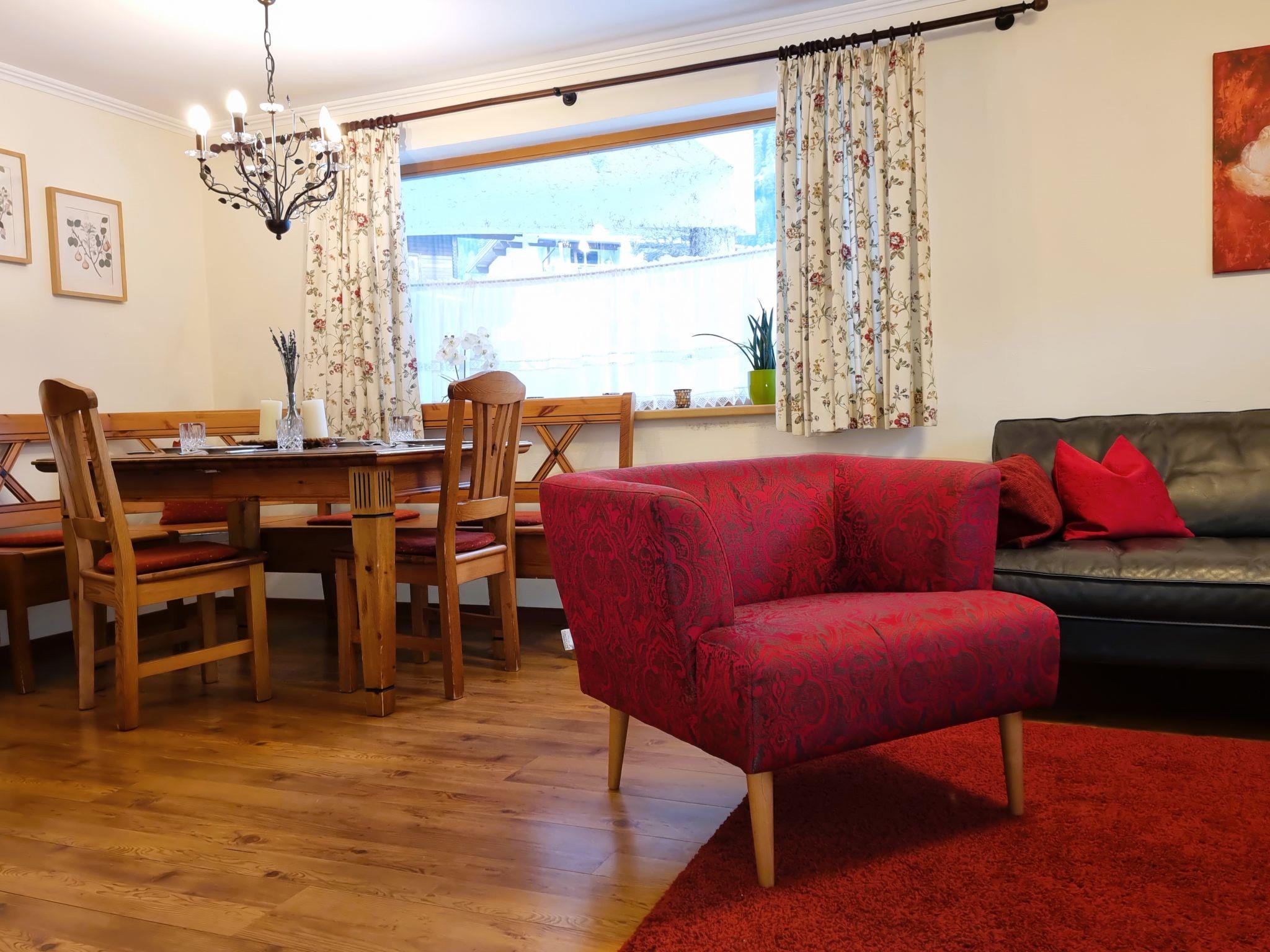 "Rätia I", 5-room apartment 85 m2, south facing position. Spacious, very beautiful and tasteful furnishings: 2 double bedrooms, each room with 1 sofabed. Kitchen-/living room (oven, dishwasher, 4 ceramic glass hob hotplates, kettle, microwave, electric coffee machine, Capsules for coffee machine (Nespresso) extra) with dining table, 1 sofabed and cable TV. Bath/shower, sep. WC. Heating. Wooden floors, natural stone floors. Comfortable furnishings in the country house style. Terrace 20 m2. Terrace furniture, deck chairs. Very beautiful view of the mountains, the resort and the forest. Parking (1 car). Please note: non-smoking house. Fire extinguisher. The sofa bed cannot be pulled out.