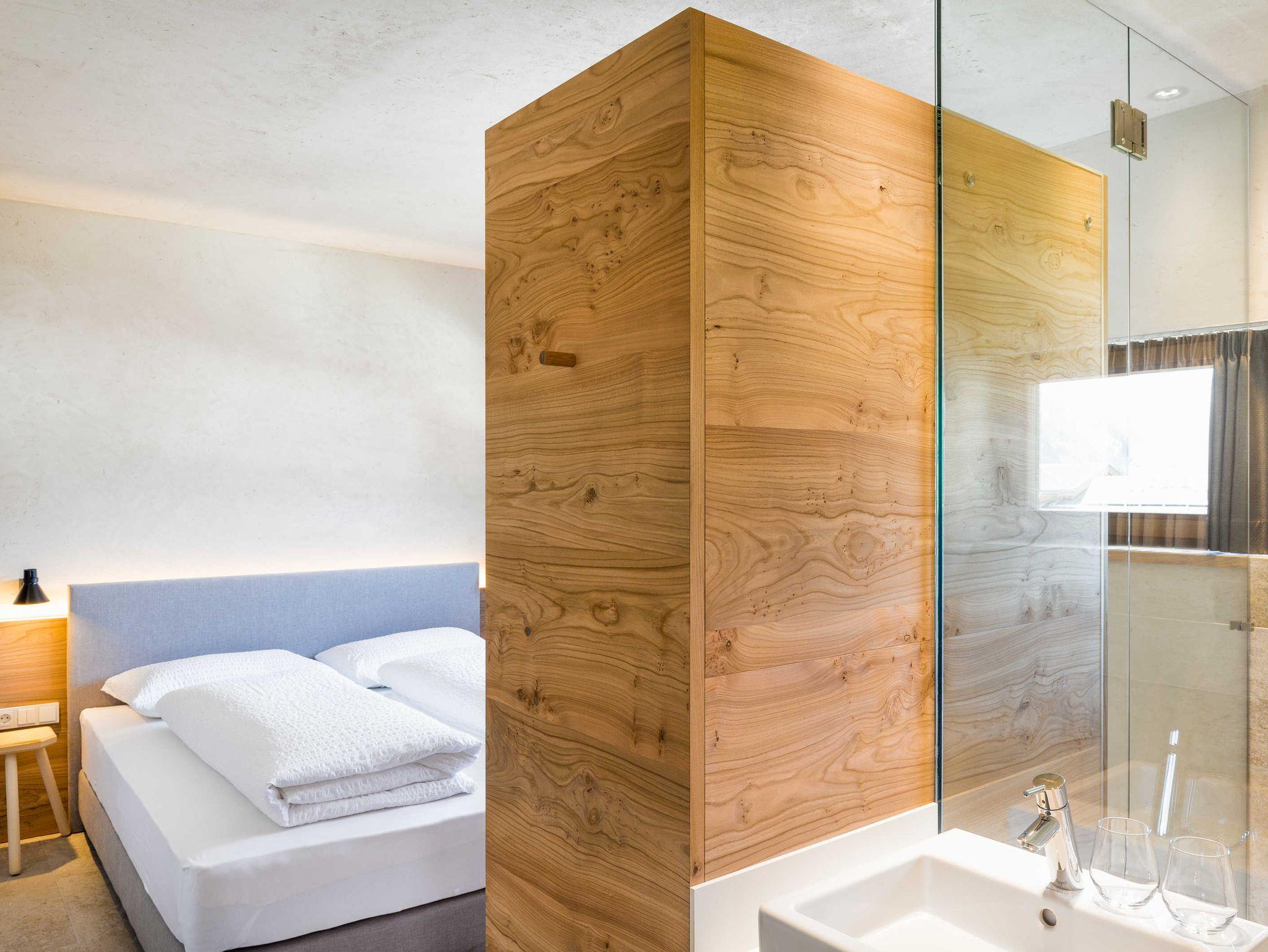 HOLZTAU: Frisch und holzig wohnen im neuen Tirolerhaus. Naturbelassene Materialien und erdige Farben schaffen die Stimmung, die Sie im Urlaub brauchen. Echt und pur mit Mut für Sinnlichkeit umgibt Sie die Wohnung wie eine dritte Haut. 10 m² Balkonterrasse werden zu ihrem hängenden Vogelnest.