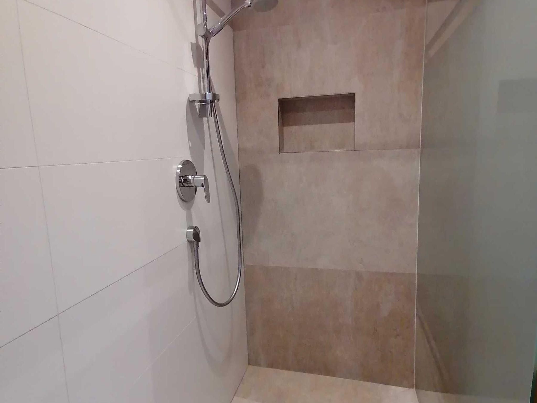 barrierefreie Dusche und WC getrennt, sowie einem Vorraum.