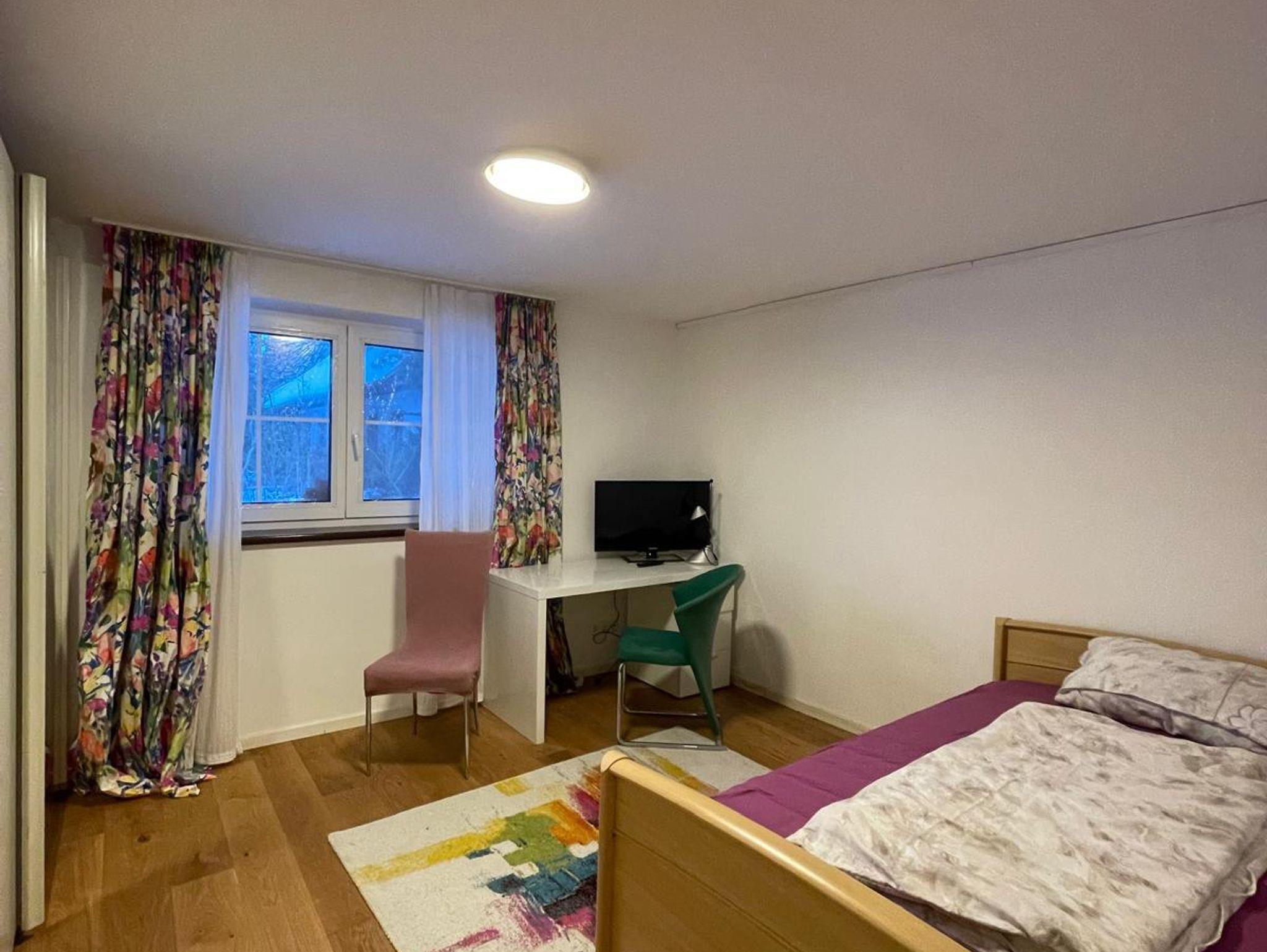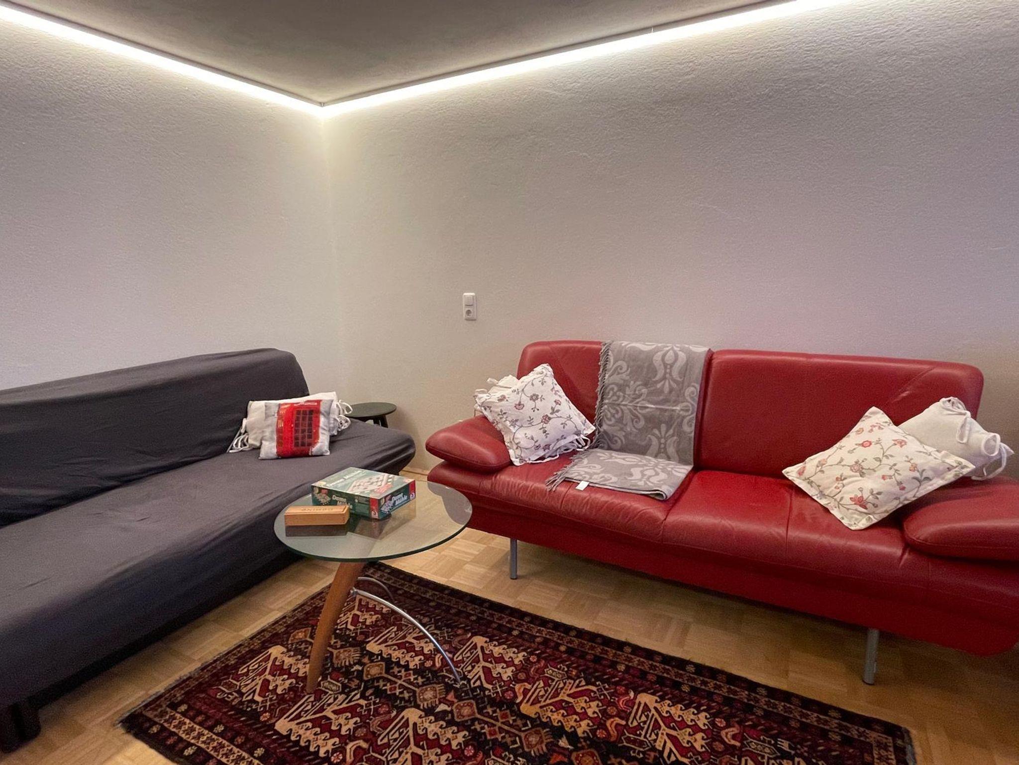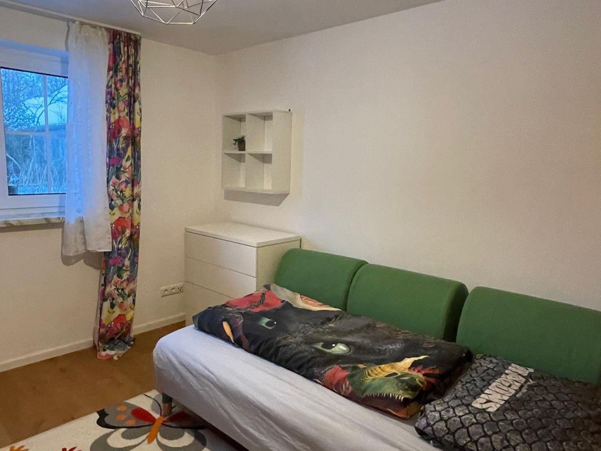 Die Familienwohnung beim Wiesbau’r bietet auf 120 m² Platz für bis zu 6 Personen. Die frisch renovierte Wohnung im Erdgeschoss verfügt über einen Garten zur gemeinsamen Nutzung, eine großzügige Küche mit Essplatz sowie ein Wohnzimmer mit TV-Anschluss und Fernseher. Es gibt ein Elternschlafzimmer, zwei Kinderzimmer und zusätzlich eine Schlafmöglichkeit auf dem Sofa.