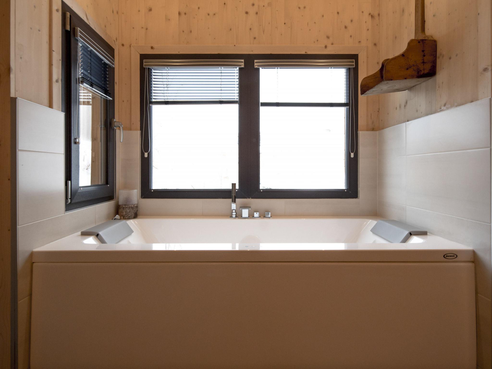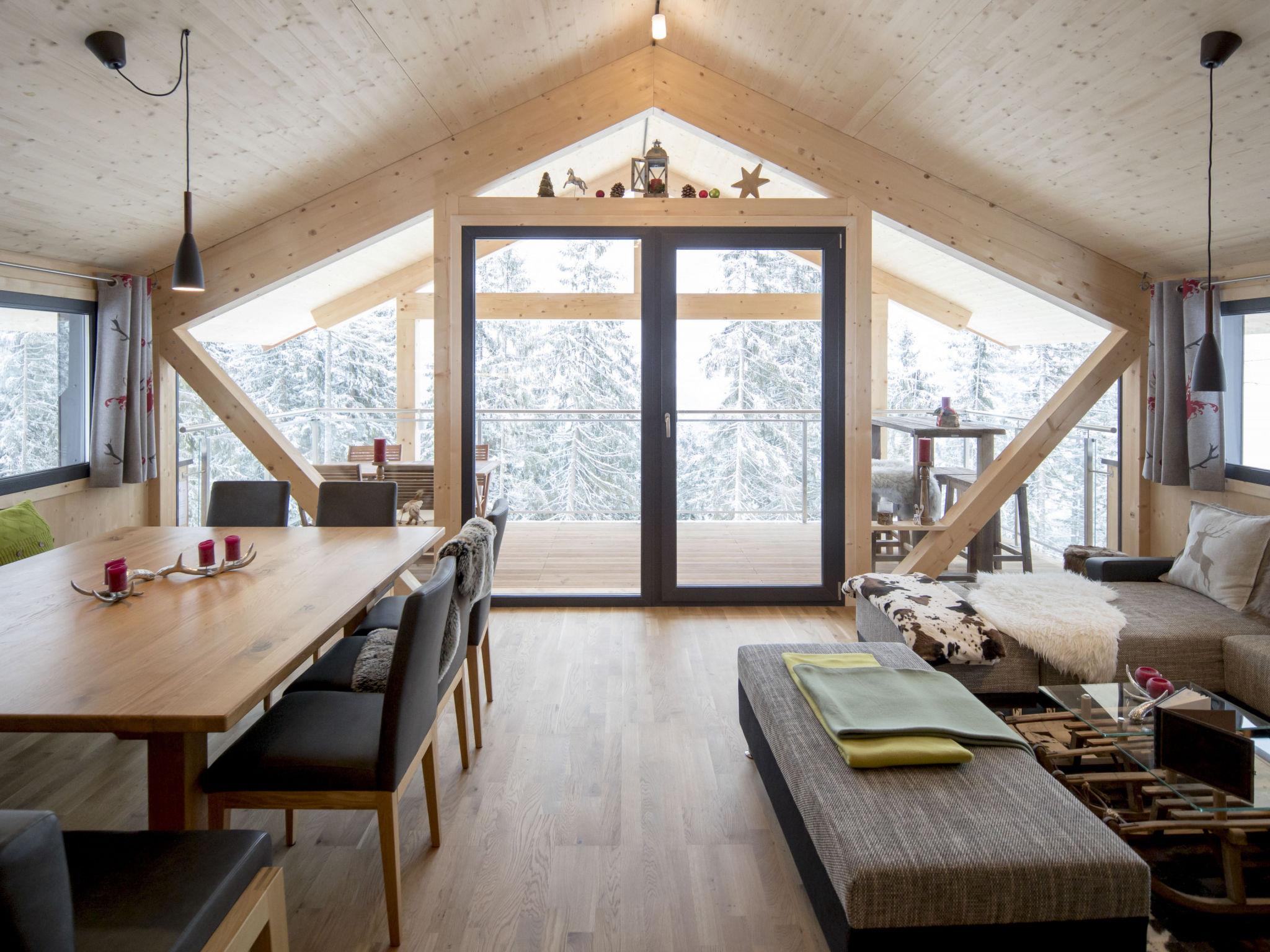 "Superior 10 Sauna u.Sprudelwanne innen", 5-room chalet 120 m2. Comfortable and tasteful furnishings: living/dining room with dining nook and satellite TV (flat screen). 3 double bedrooms. 1 room with 2 x 2 bunk beds. Open kitchen (oven, dishwasher, 4 ceramic glass hob hotplates, toaster, kettle, microwave, electric coffee machine). Bath/WC, 2 showers/WC, 3 sep. WC's, hydro massage bath, Sauna. Balcony terrace. Terrace furniture. Very beautiful view of the mountains. Facilities: hair dryer. Internet (WiFi, free). Please note: non-smokers only.