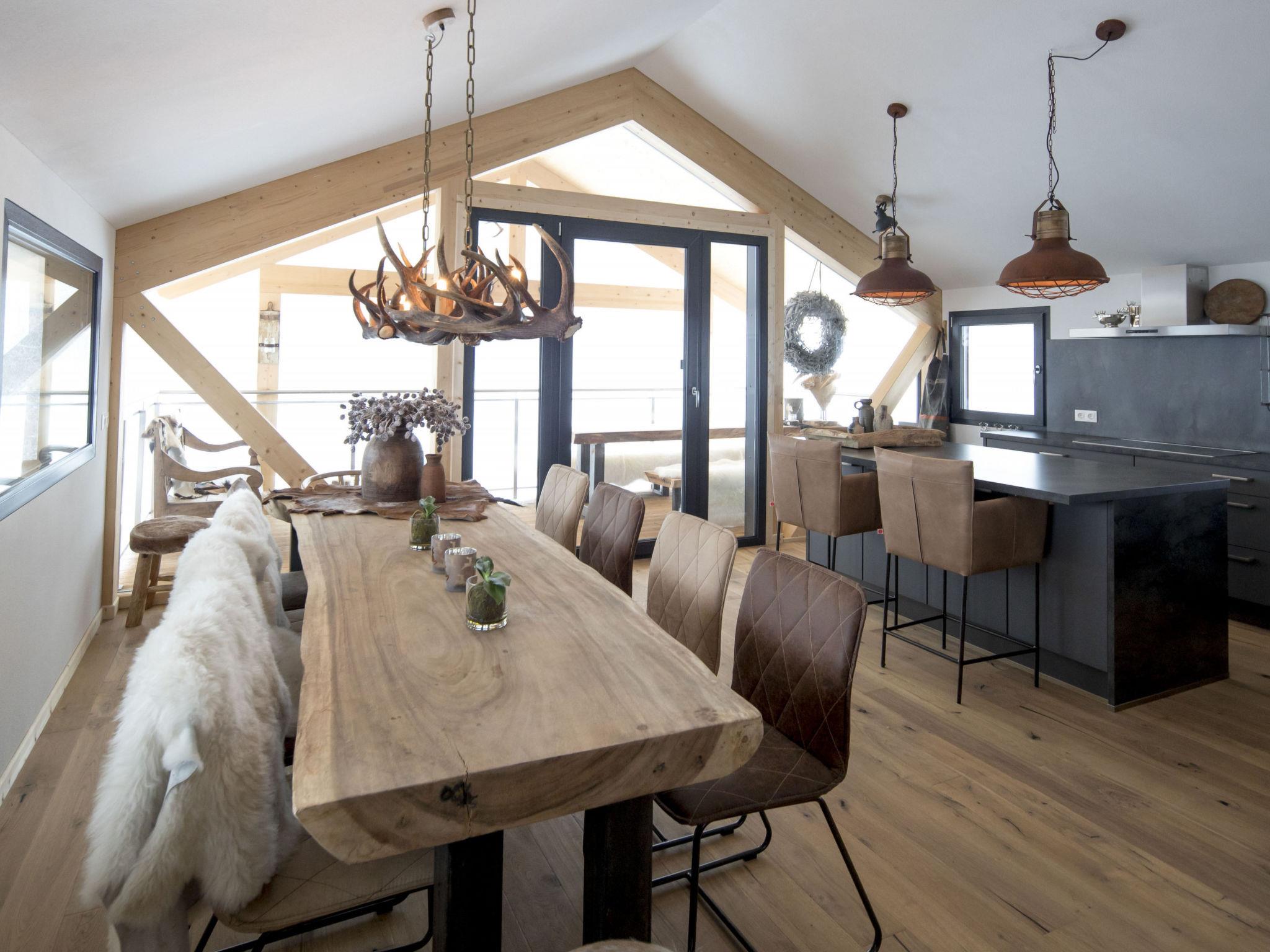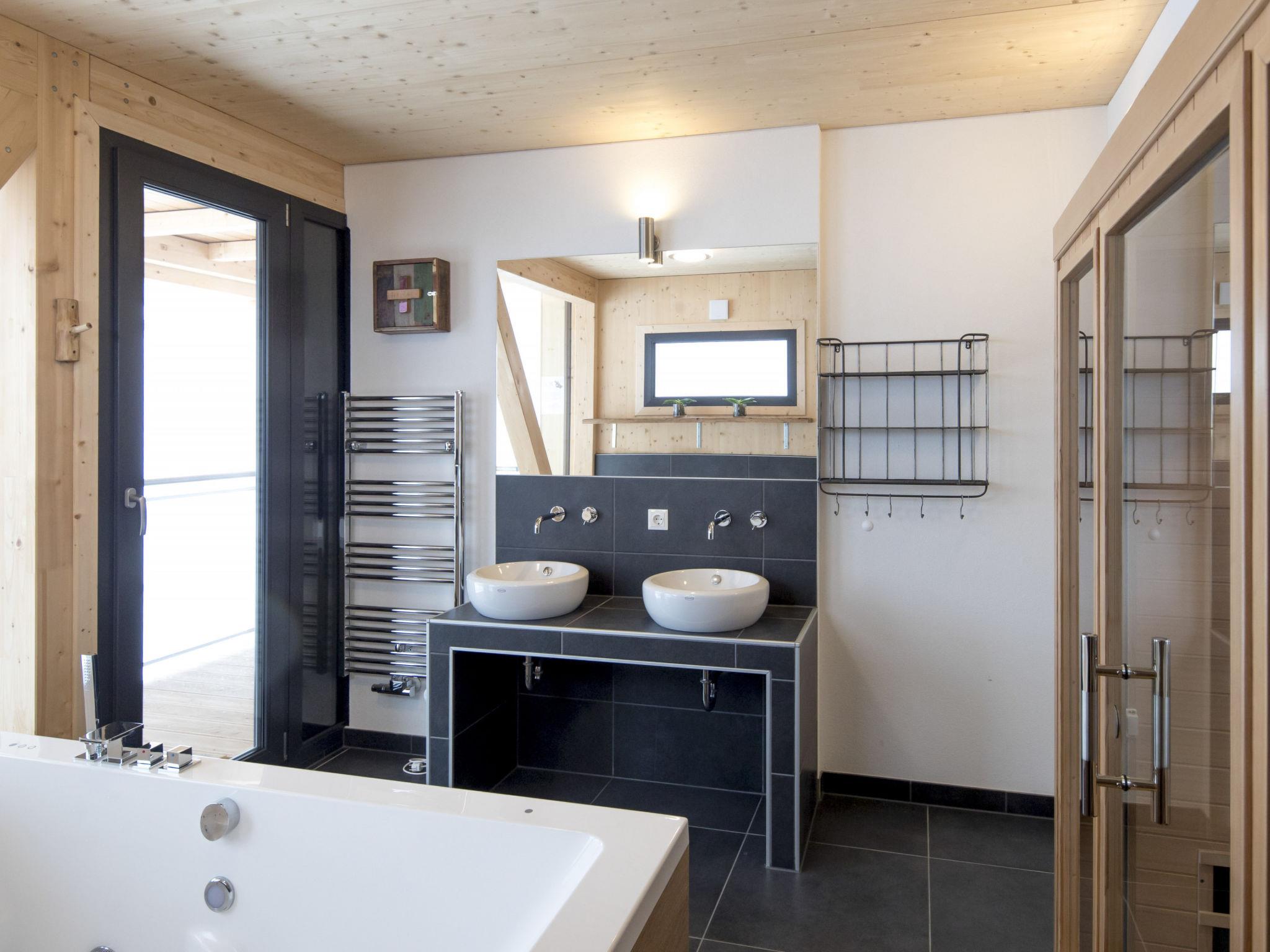 "Superior 8 Sauna & Sprudelwanne innen", 4-room chalet 120 m2. Comfortable and tasteful furnishings: living/dining room with dining nook and satellite TV (flat screen). 2 double bedrooms, each room with shower/WC. 1 double bedroom with shower/WC and satellite TV (flat screen). Open kitchen (oven, dishwasher, 4 ceramic glass hob hotplates, toaster, kettle, microwave, electric coffee machine). Shower/WC, Sauna. Balcony. Balcony furniture. Very beautiful view of the mountains. Facilities: hair dryer. Internet (WiFi, free). Please note: non-smokers only.
